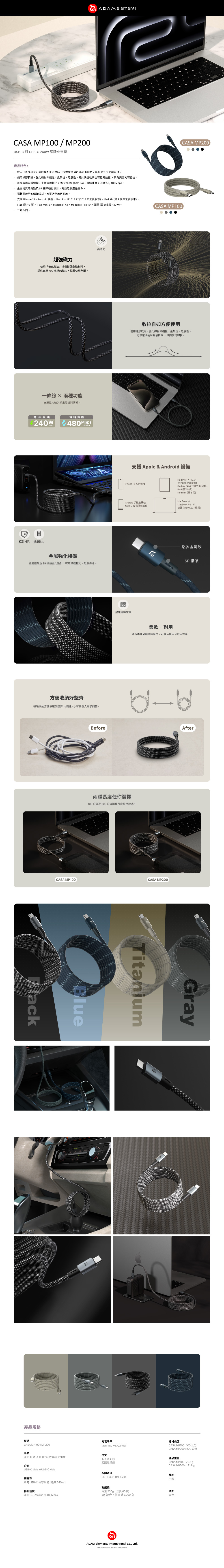 ⨳ 可充電與資料傳輸,支援電源輸出:Max 240W(48V, 5A);傳輸速度:USB 2.0, 480Mbps。