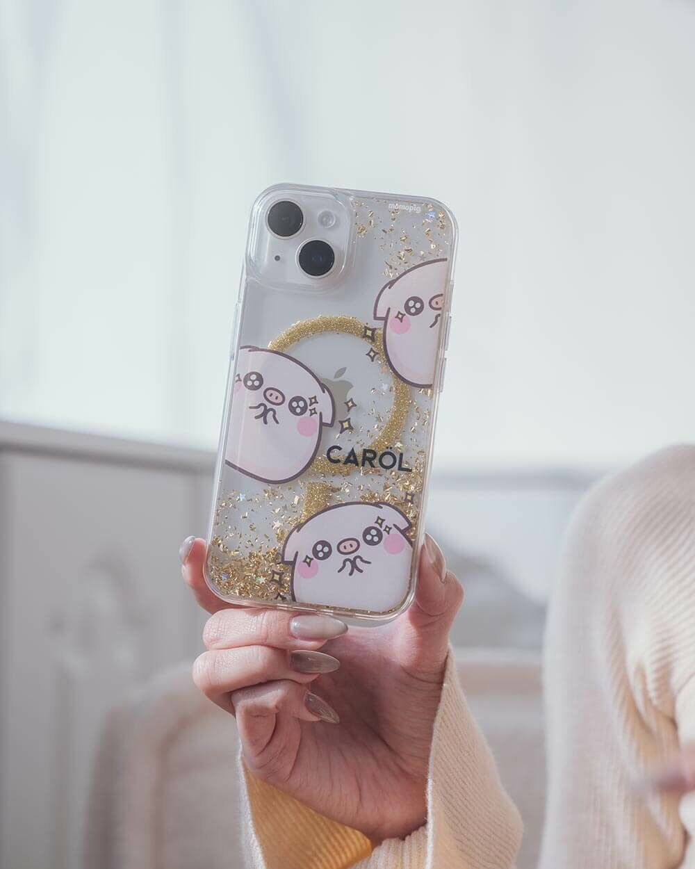 【插畫聯名】萌萌豬 我就圓滾滾 香檳金貝拉殼 (MagSafe兼容) - iPhone客製化防摔手機殼