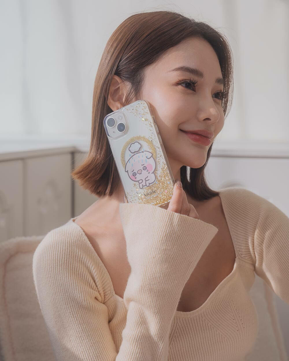 【插畫聯名】萌萌豬 厭世中的me 香檳金貝拉殼 (MagSafe兼容) - iPhone客製化防摔手機殼
