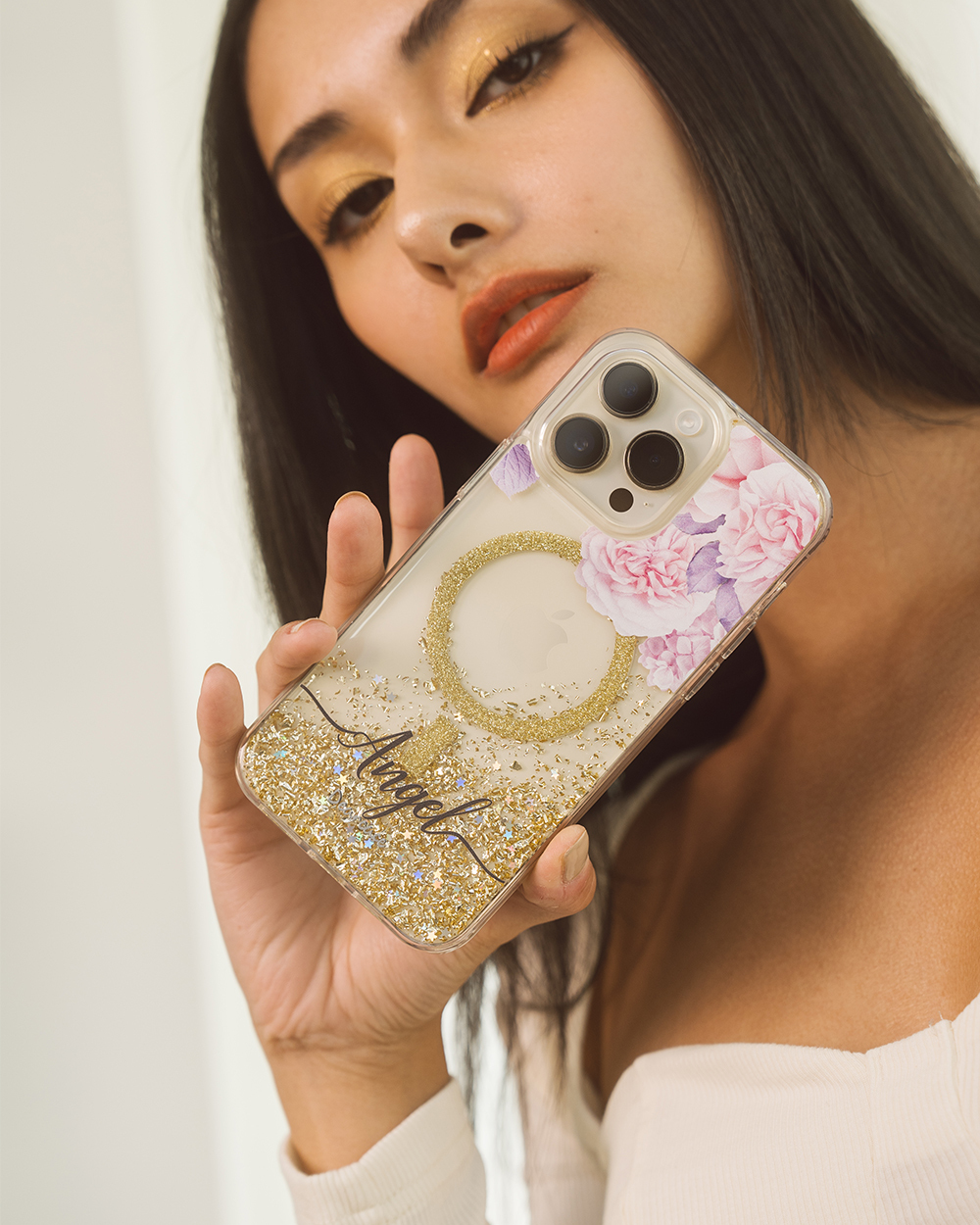 • 手機殼:香檳金箔+亮片+磁鐵(MagSafe)