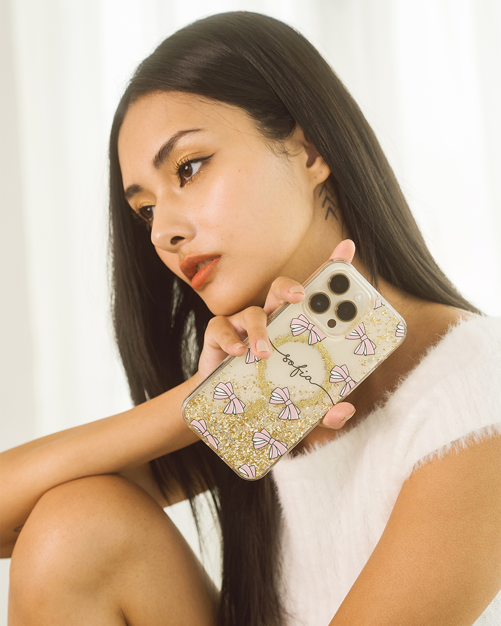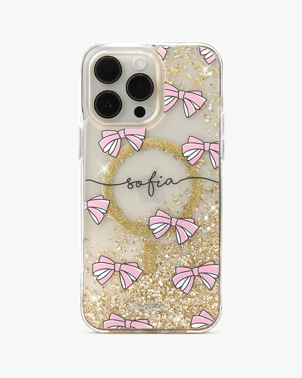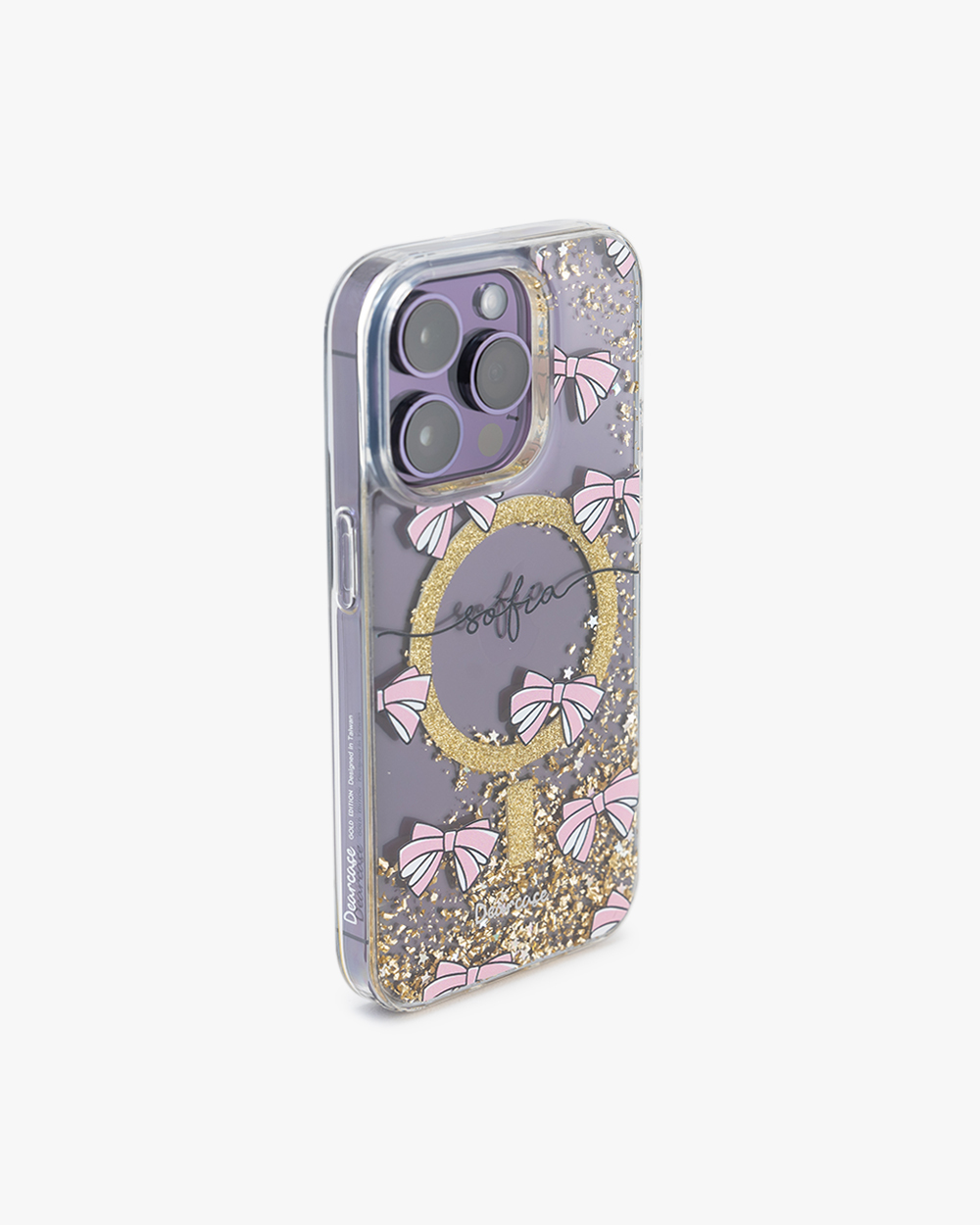 粉蝴蝶結 香檳金貝拉殼 (MagSafe) - (訂製名字) iPhone客製化手機殼