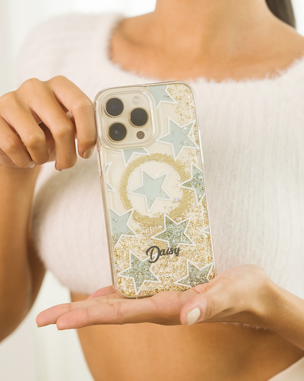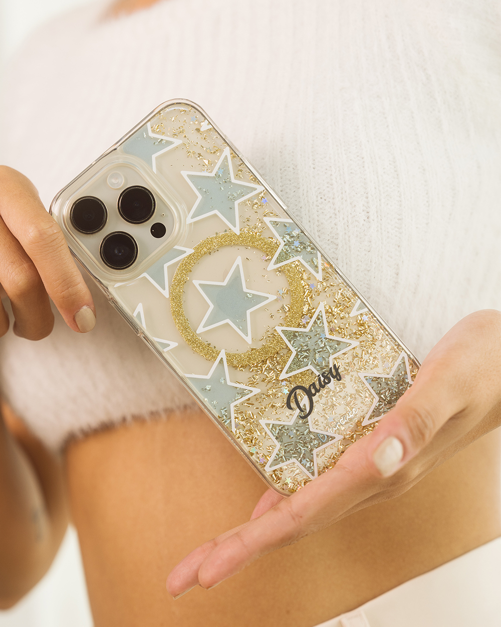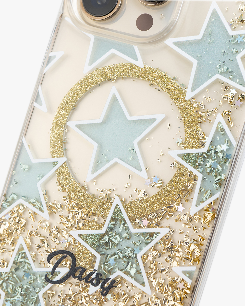 藍色星星 香檳金貝拉殼 (MagSafe) - (訂製名字) iPhone客製化手機殼