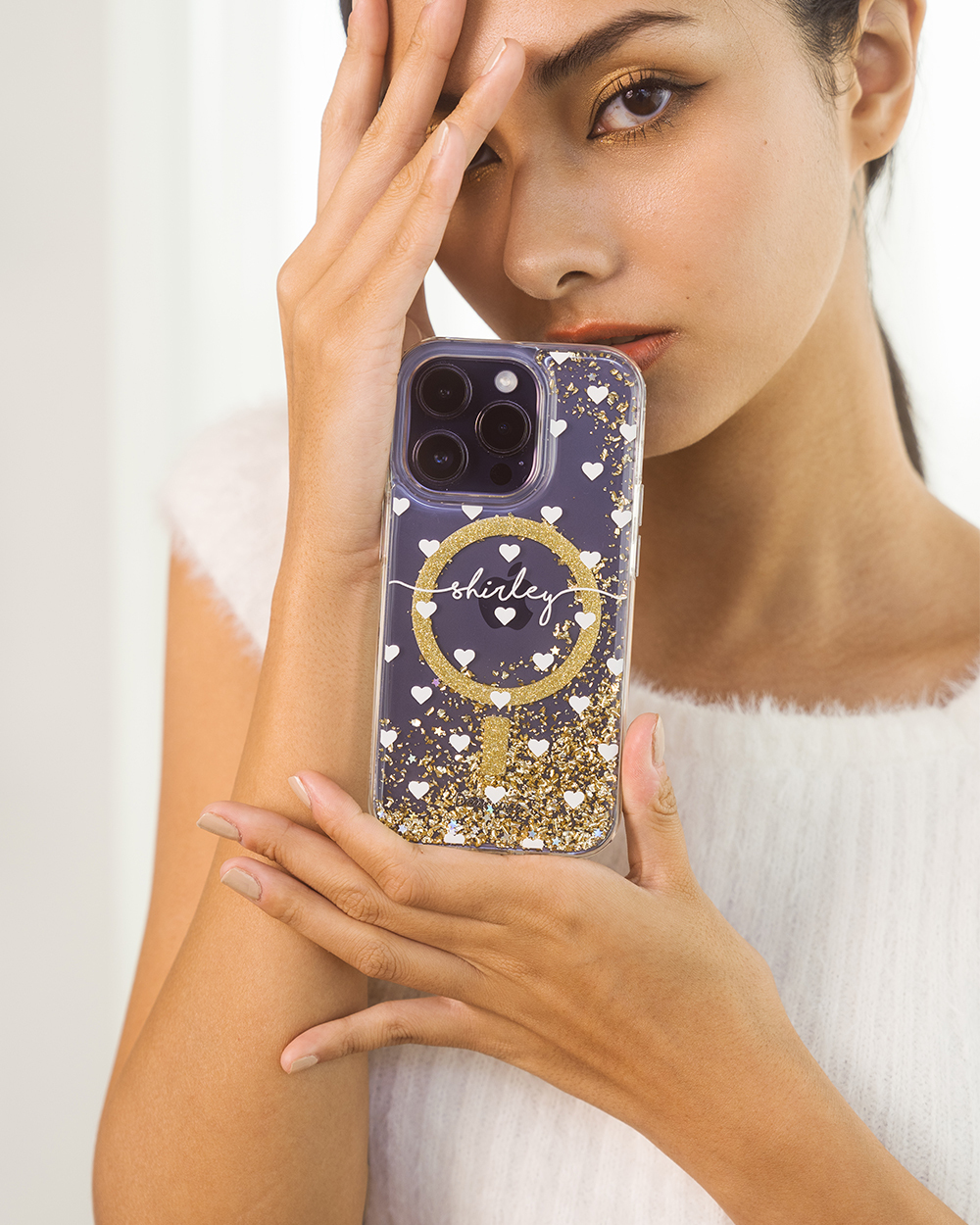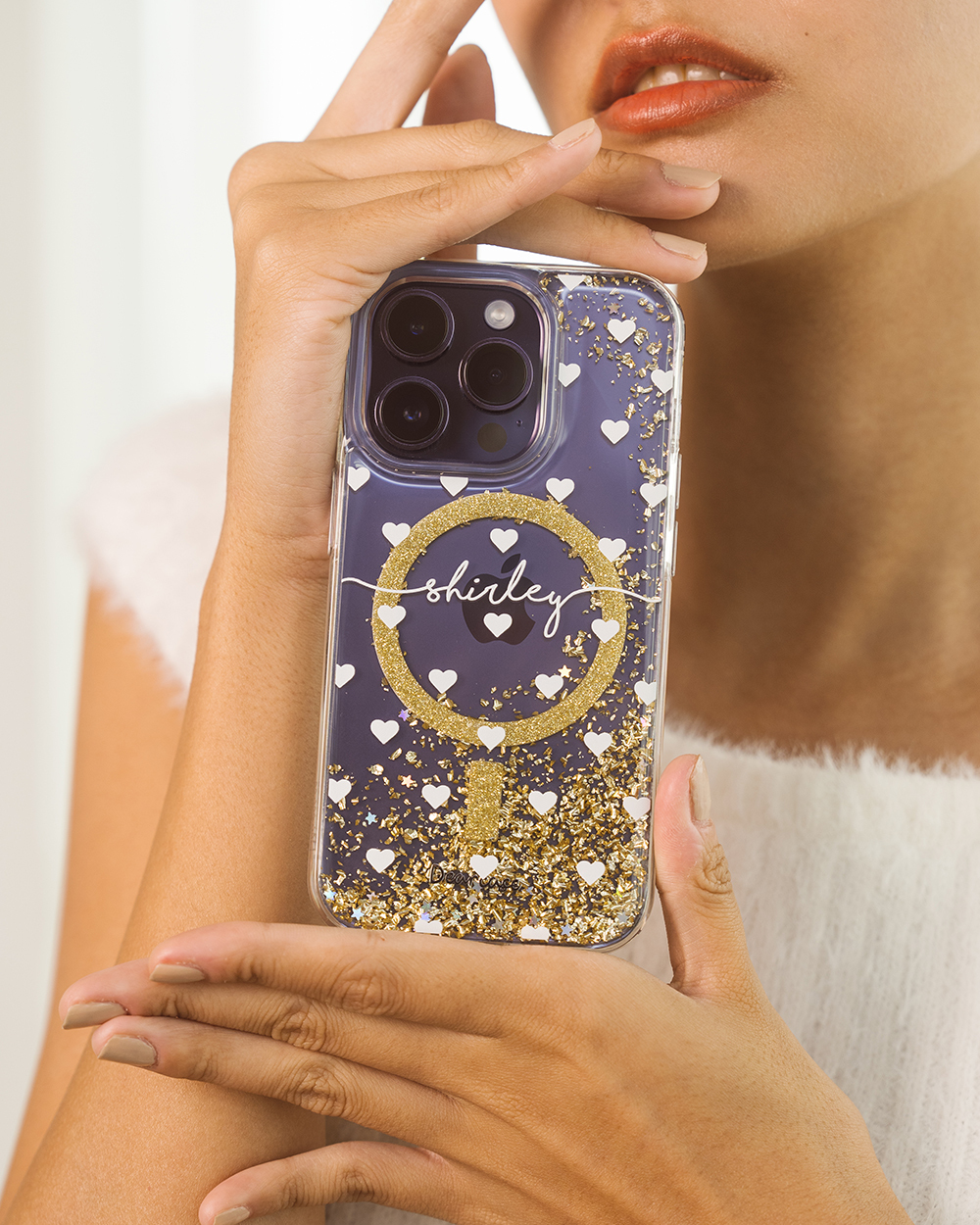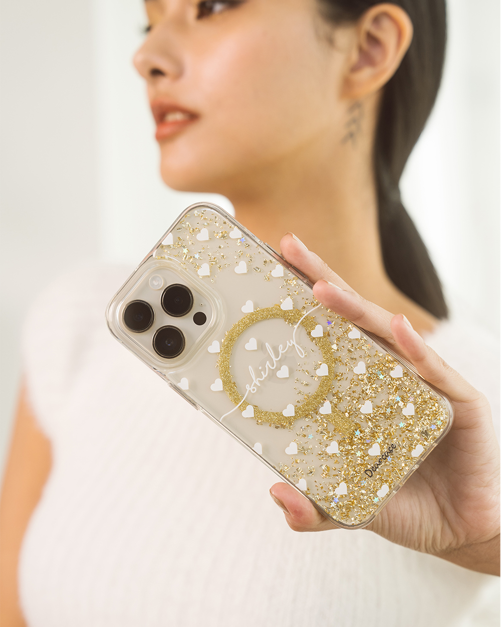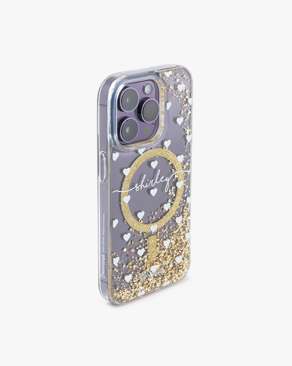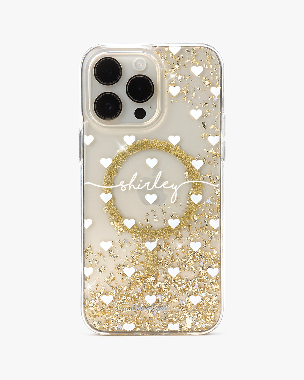 白色愛心 香檳金貝拉殼 (MagSafe) - (訂製名字) iPhone客製化手機殼