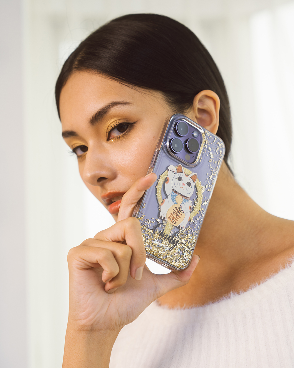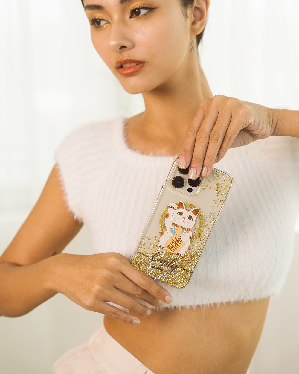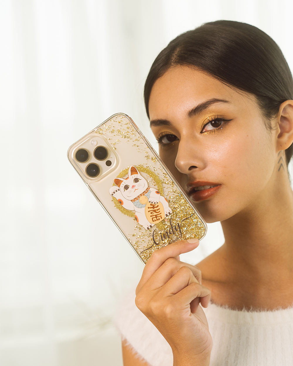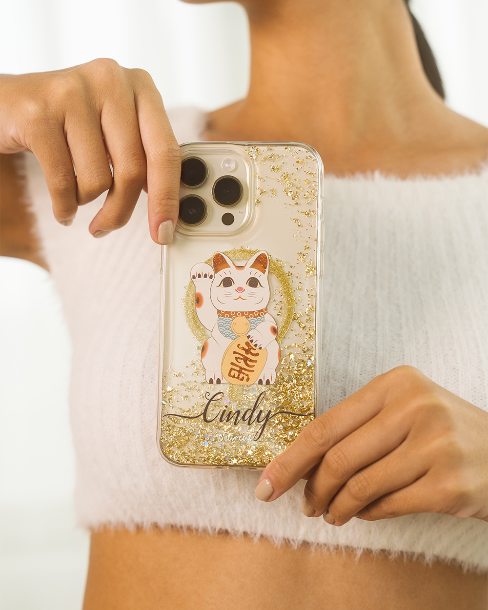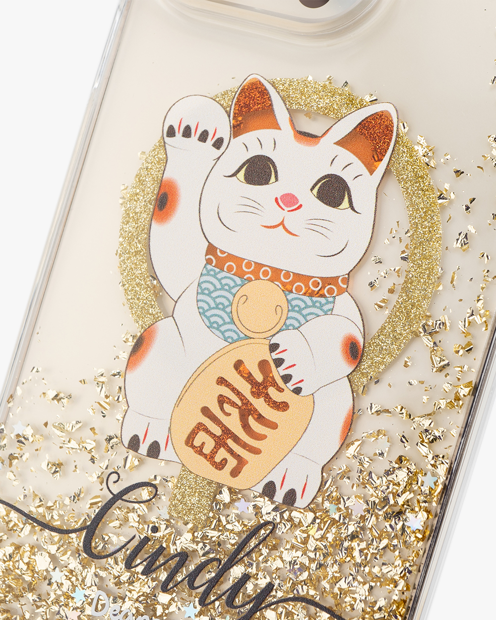 招財喵喵 香檳金貝拉殼 (MagSafe) - (訂製名字) iPhone客製化手機殼
