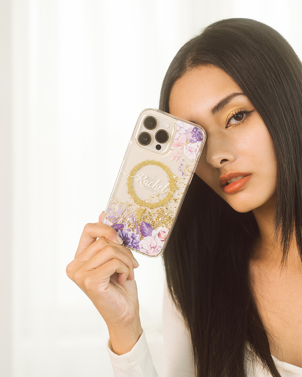 • 手機殼:香檳金箔+亮片+磁鐵(MagSafe)