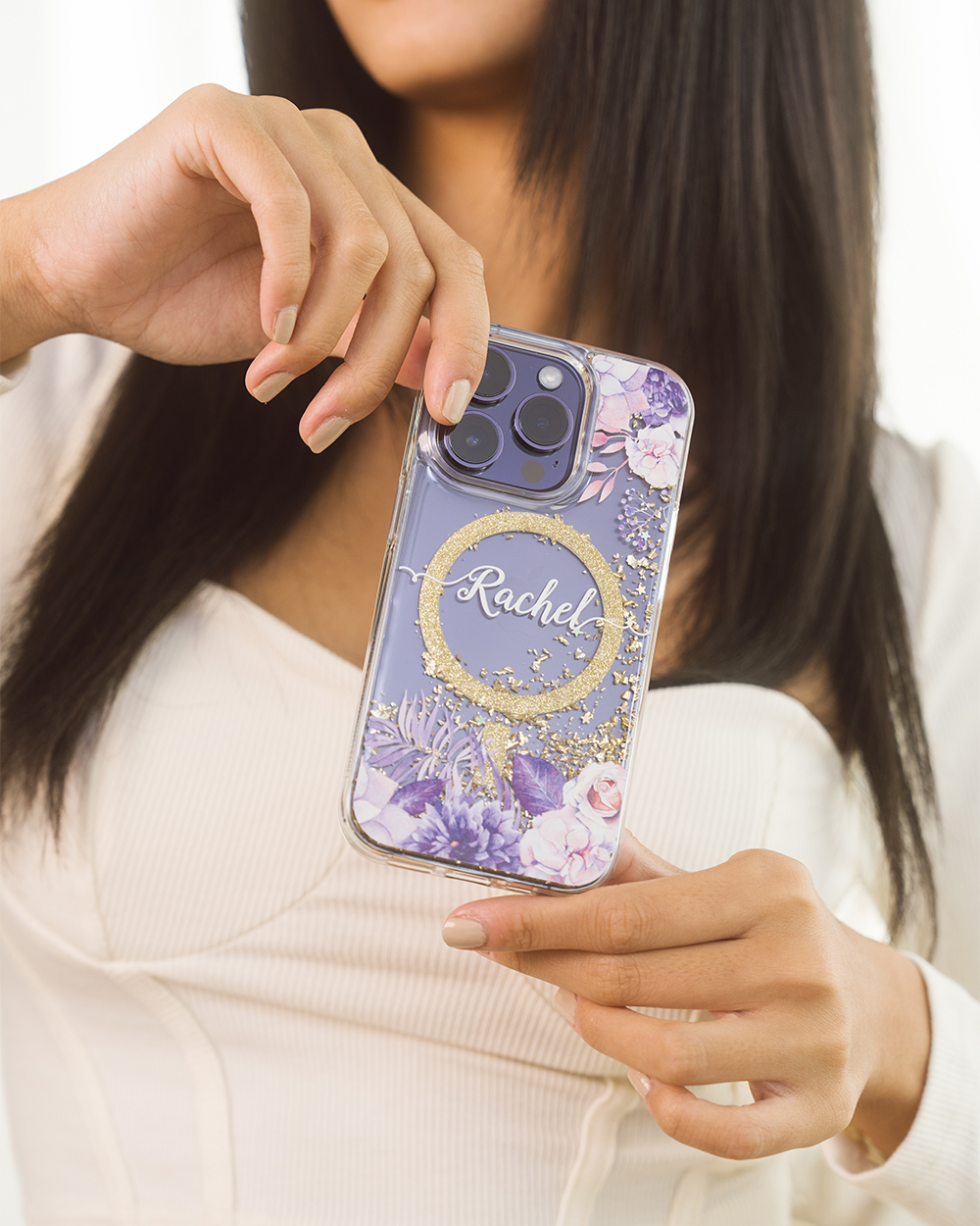 紫色叢林 香檳金貝拉殼 (MagSafe) - (訂製名字) iPhone客製化手機殼