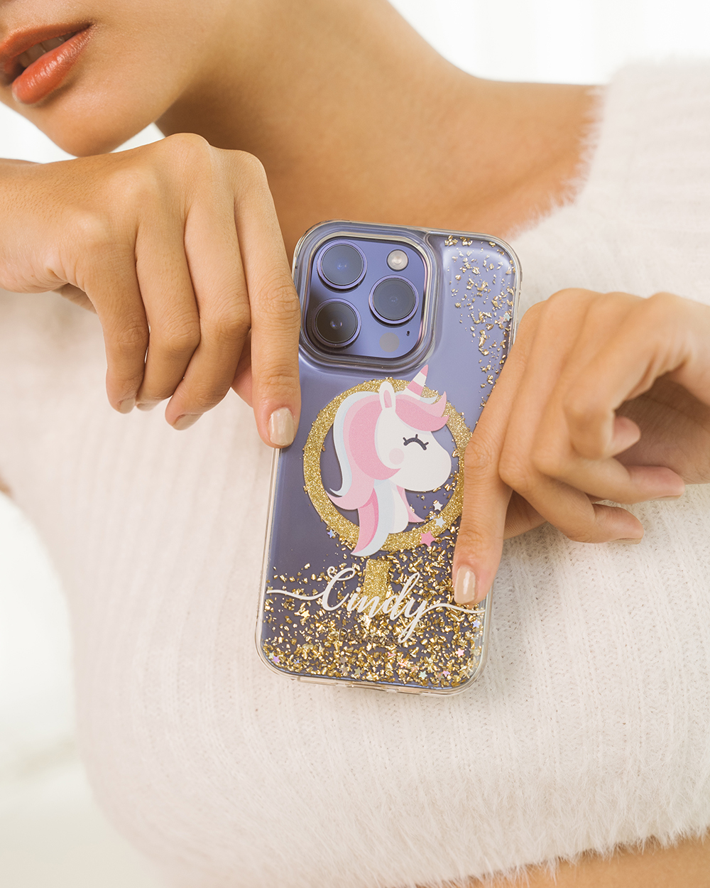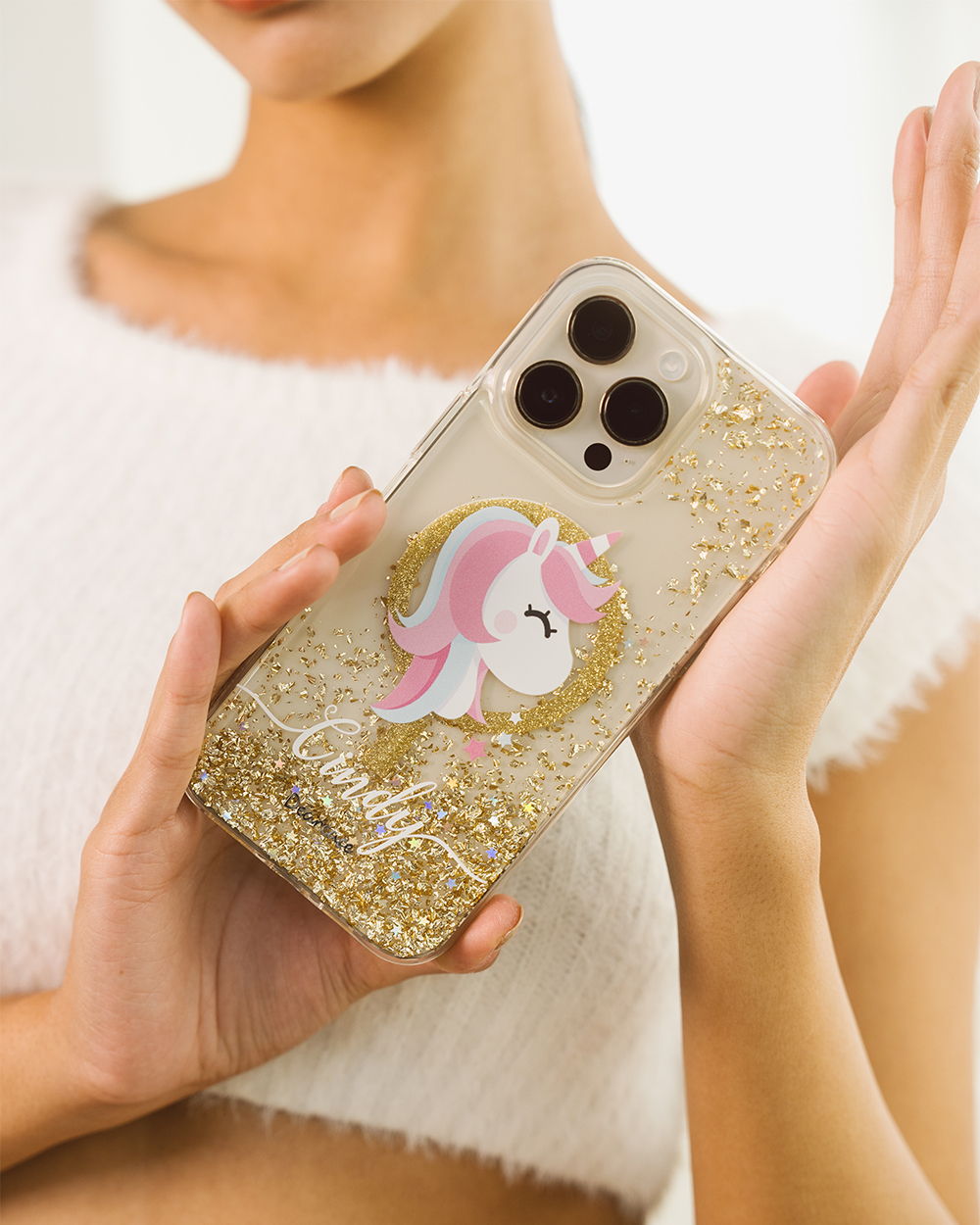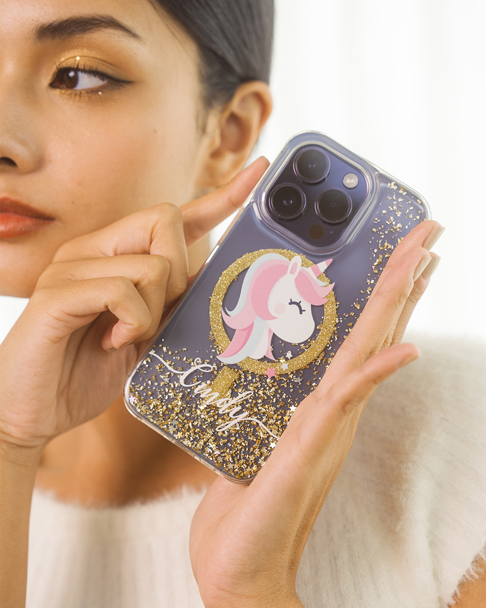 夢幻獨角獸 香檳金貝拉殼 (MagSafe) - (訂製名字) iPhone客製化手機殼
