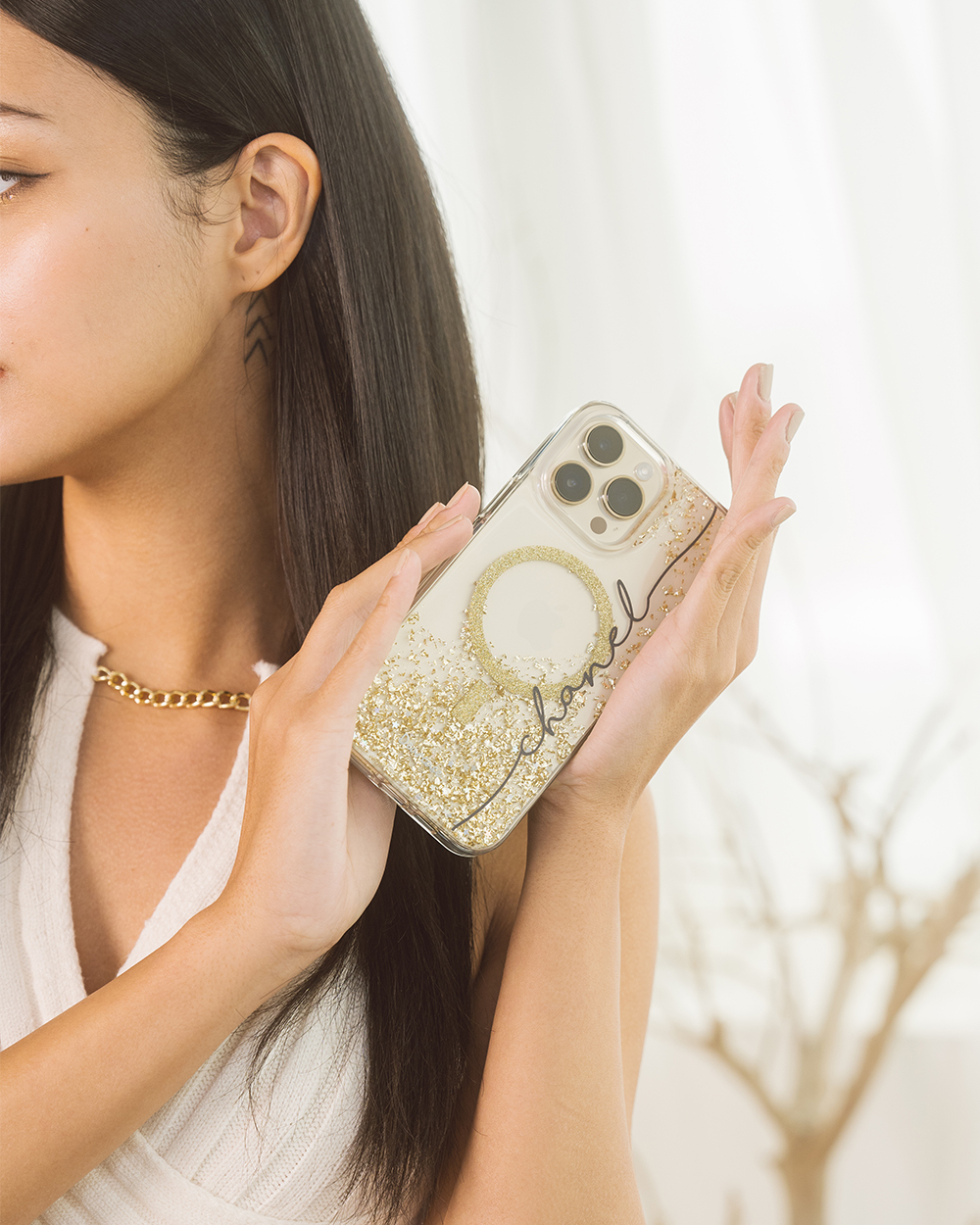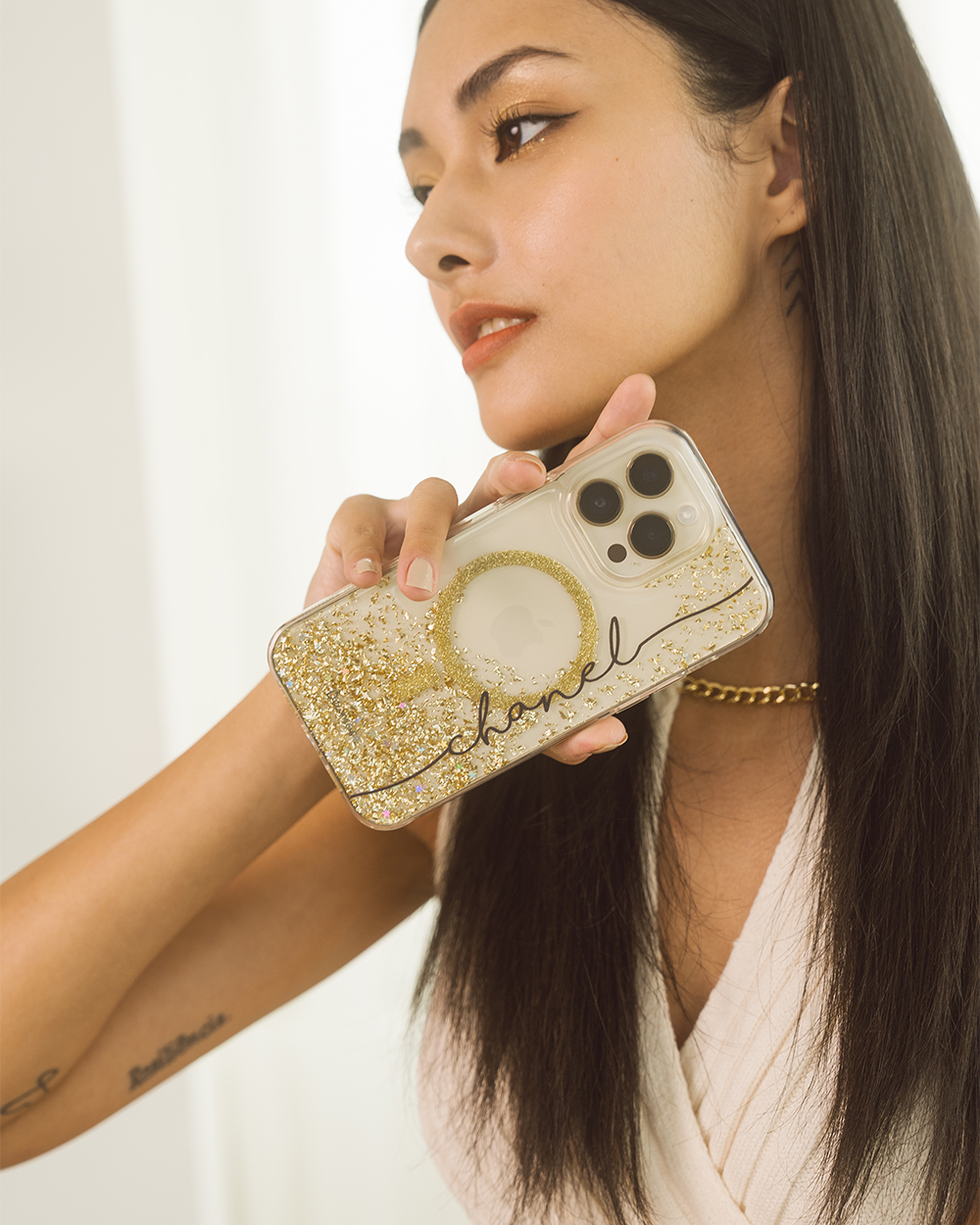 • 手機殼:香檳金箔+亮片+磁鐵(MagSafe)