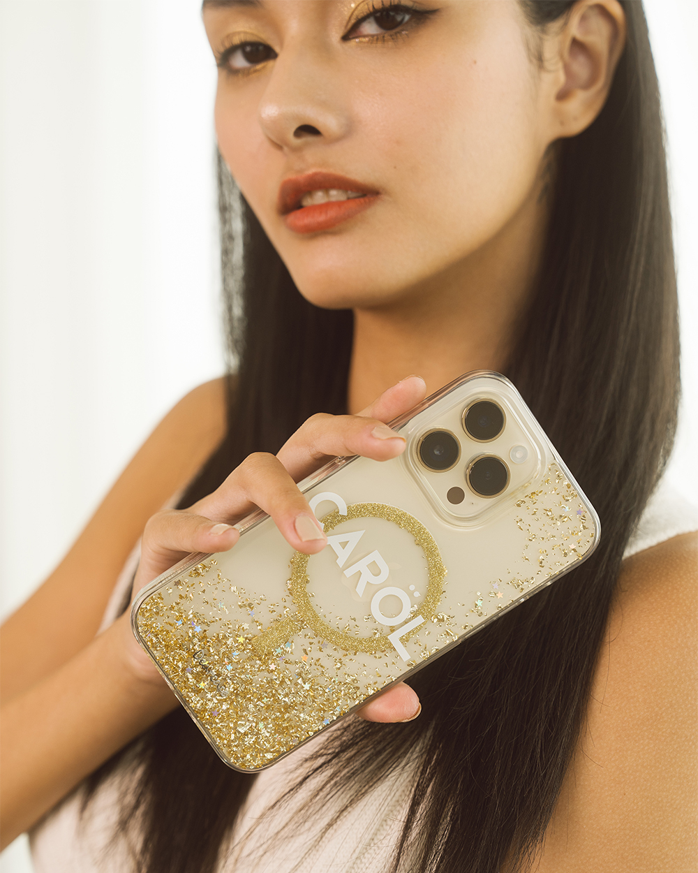 • 手機殼:香檳金箔+亮片+磁鐵(MagSafe)