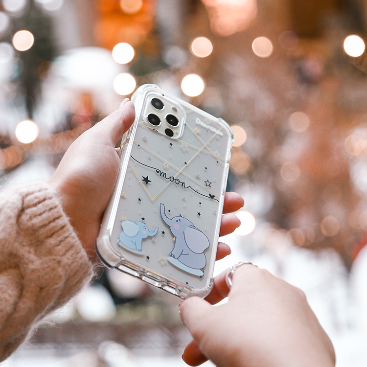 灰色小象 撞白殼 - (訂製名字) iPhone客製化手機殼