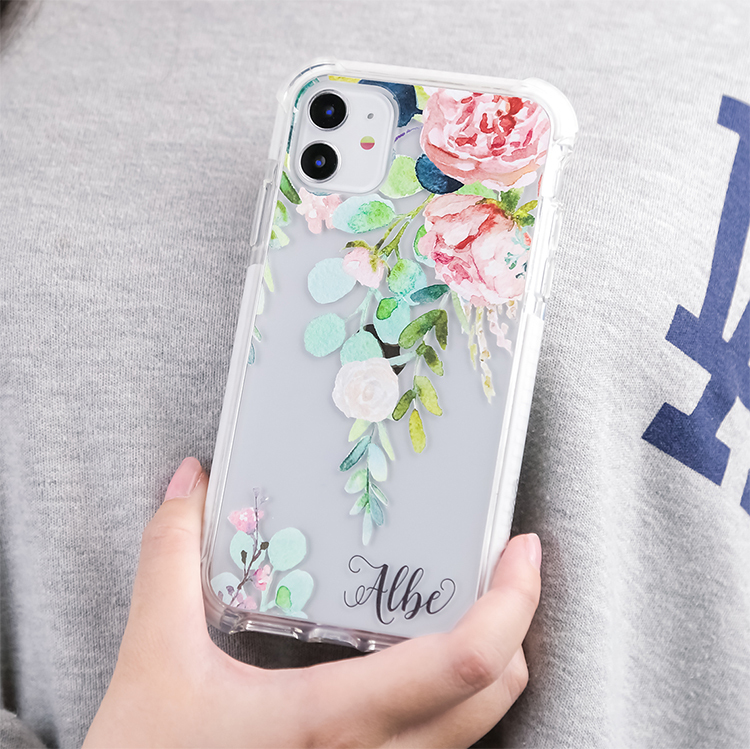 文青玫瑰 撞白殼 - (訂製名字) iPhone客製化手機殼