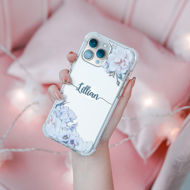 淺紫羅蘭 撞白殼 - (訂製名字) iPhone客製化手機殼