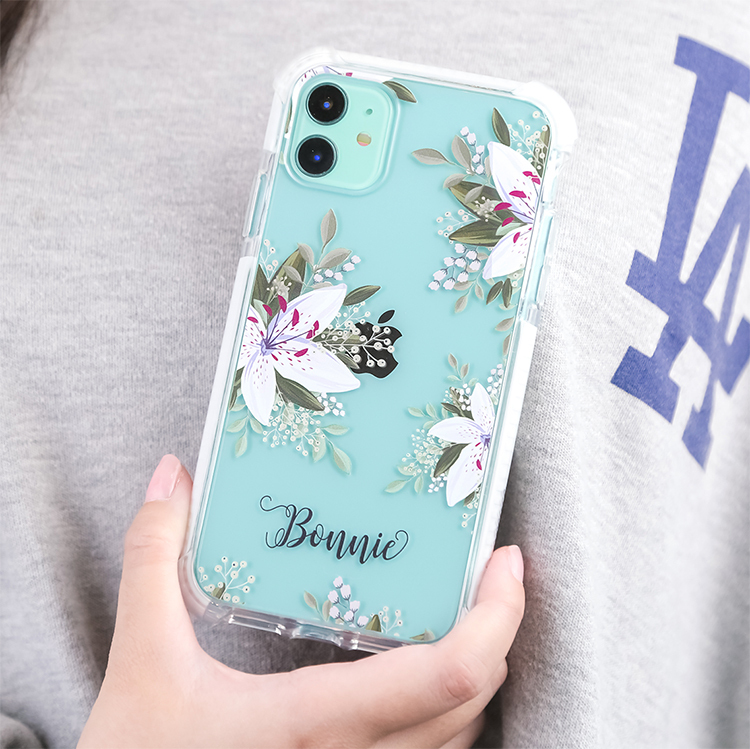 清新百合 撞白殼 - (訂製名字) iPhone客製化手機殼