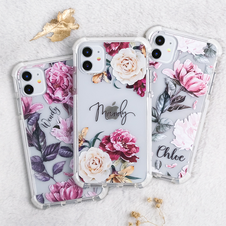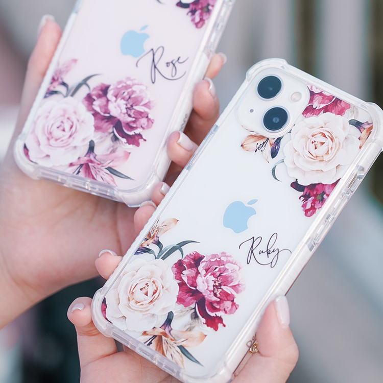 復古玫瑰 撞白殼 - (訂製名字) iPhone客製化手機殼