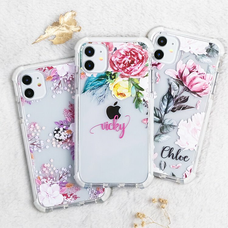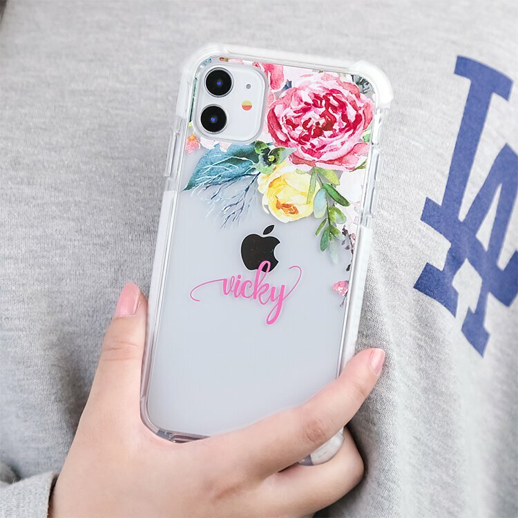 水彩玫瑰 撞白殼 - (訂製名字) iPhone客製化手機殼