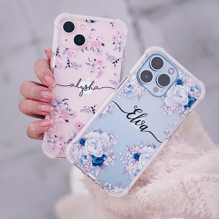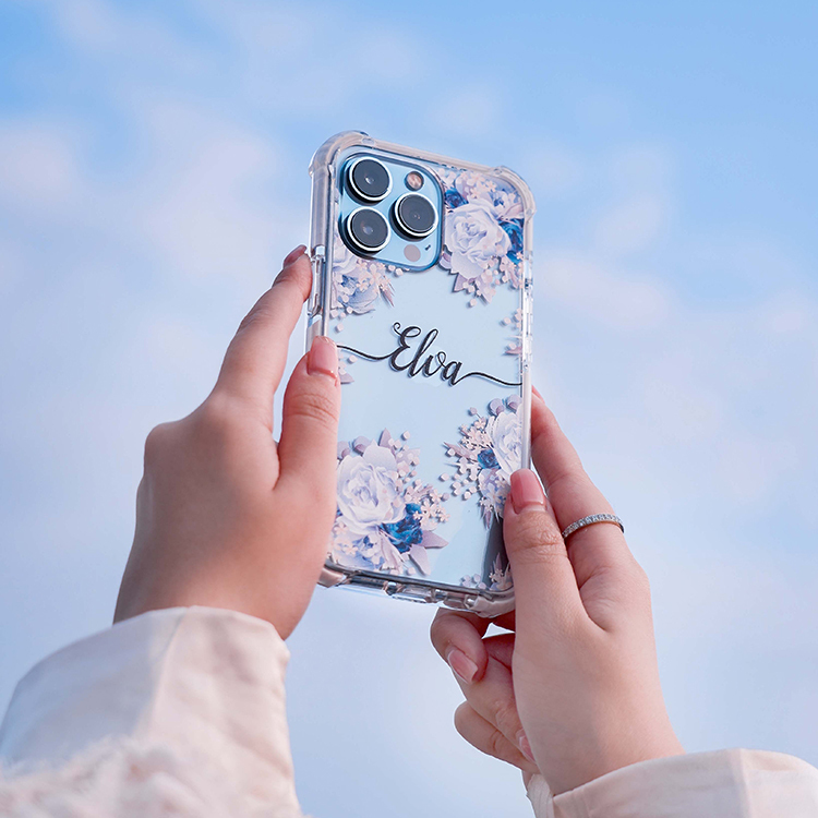 湛藍玫瑰 撞白殼 - (訂製名字) iPhone客製化手機殼