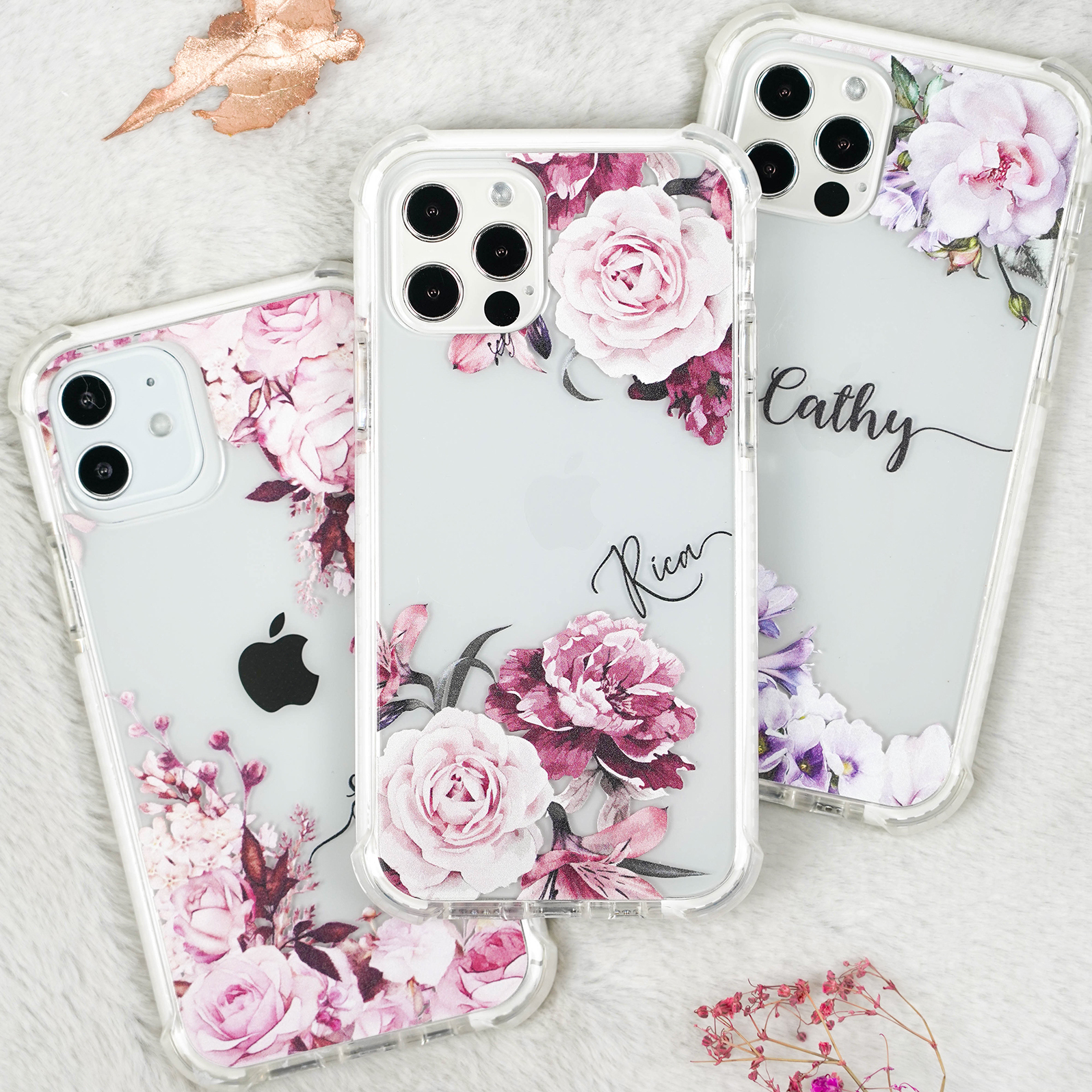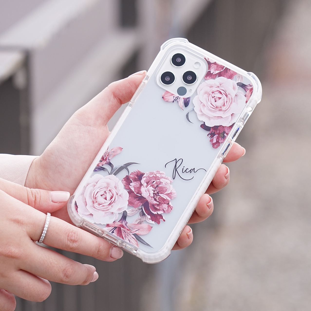 玫粉玫瑰 撞白殼 - (訂製名字) iPhone客製化手機殼
