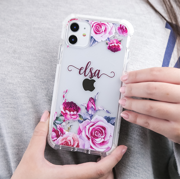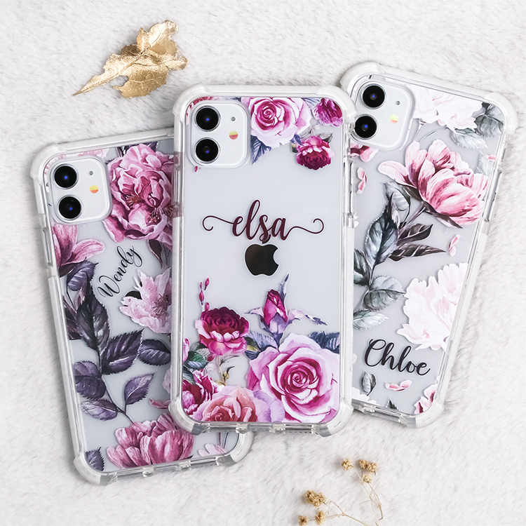 桃紫玫瑰 撞白殼 - (訂製名字) iPhone客製化手機殼