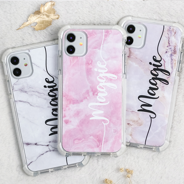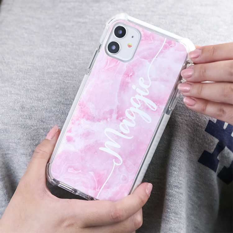 粉色控的大理石 撞白殼 - (訂製名字) iPhone客製化手機殼