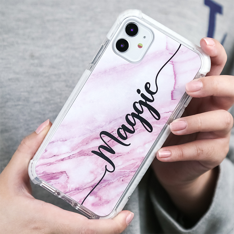 粉色調大理石紋 撞白殼 - (訂製名字) iPhone客製化手機殼