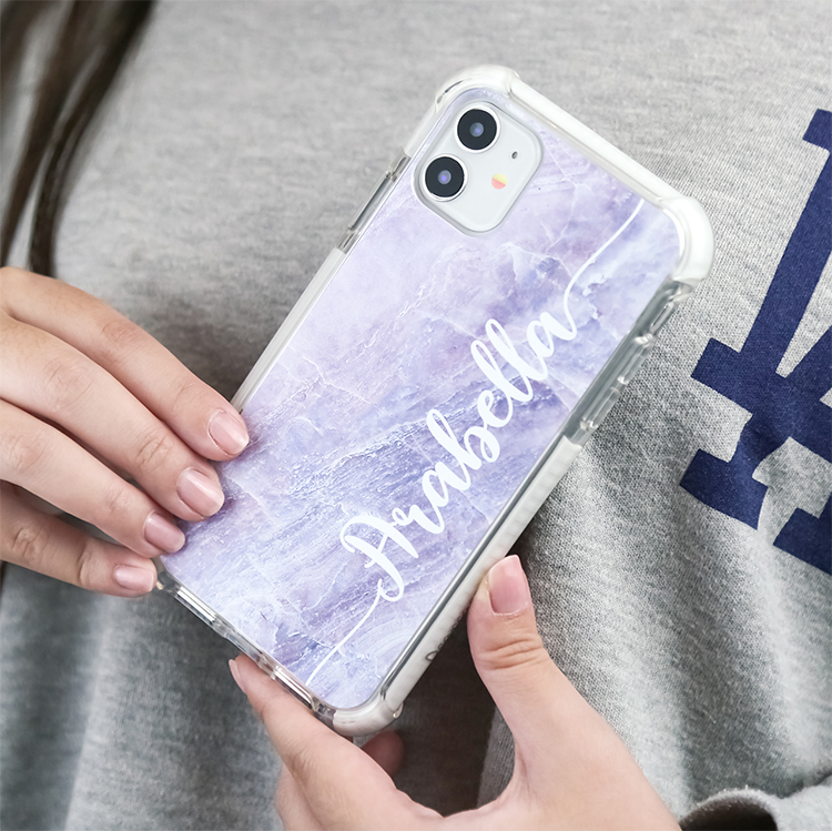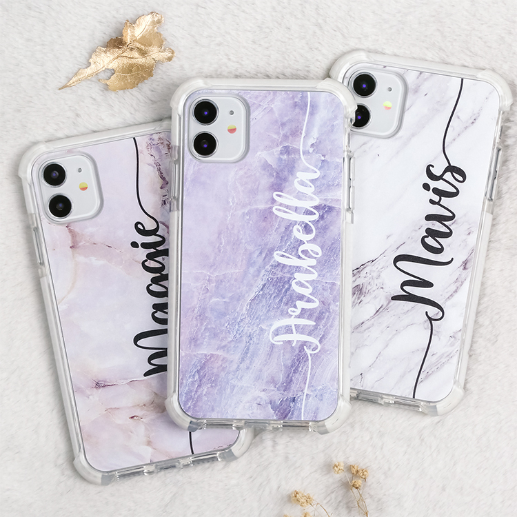 藍紫色的大理石紋 撞白殼 - (訂製名字) iPhone客製化手機殼