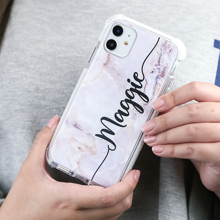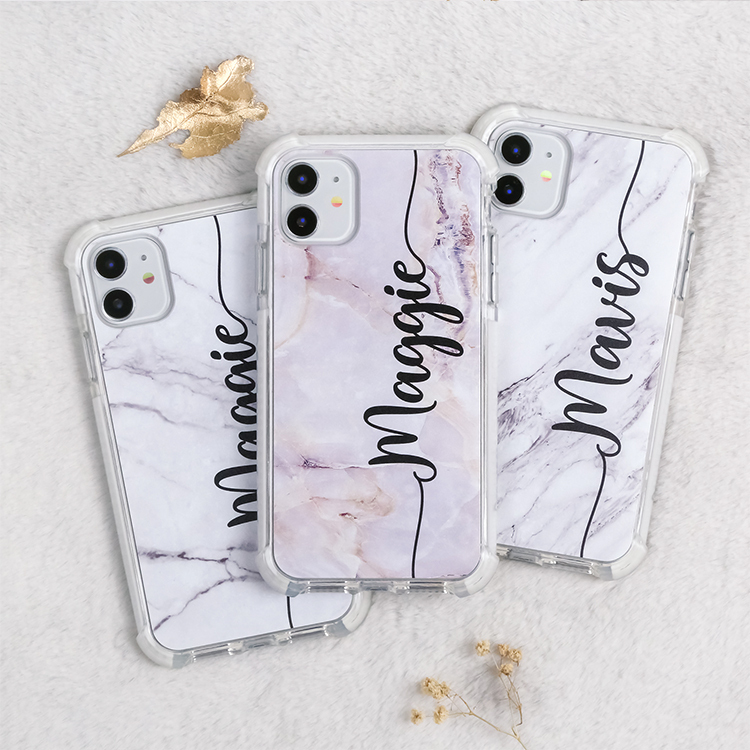 超逼真大理石紋 撞白殼 - (訂製名字) iPhone客製化手機殼