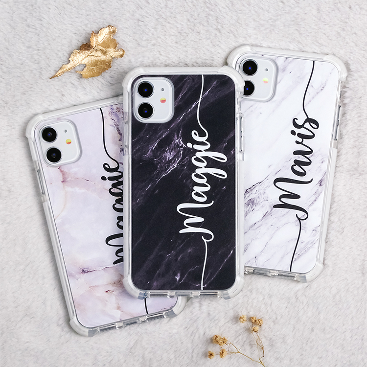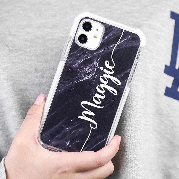 經典黑大理石紋 撞白殼 - (訂製名字) iPhone客製化手機殼