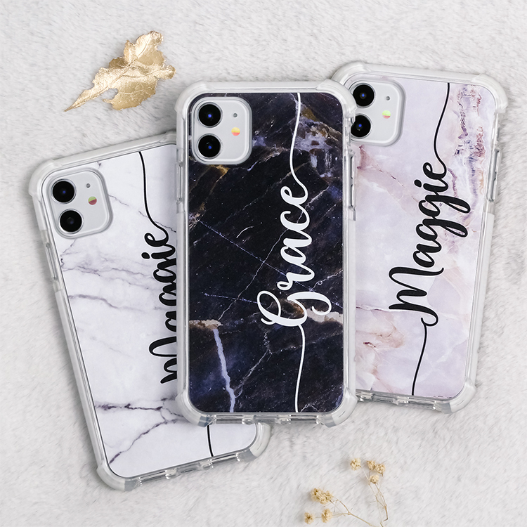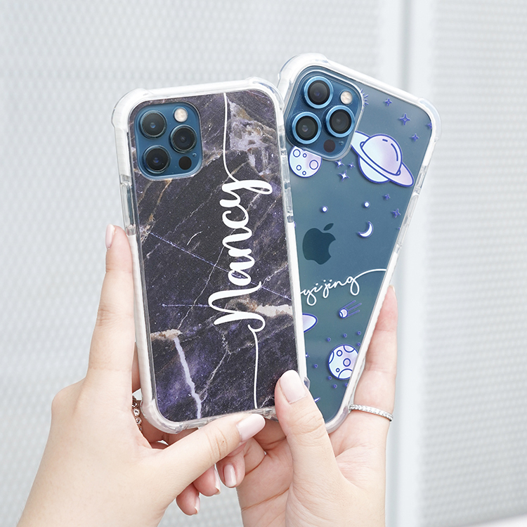 宇宙風大理石紋 撞白殼 - (訂製名字) iPhone客製化手機殼