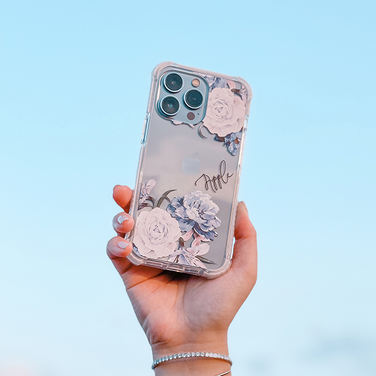 藍紫玫瑰 撞白殼 - (訂製名字) iPhone客製化手機殼