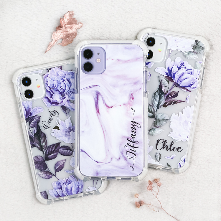 芋頭紫大理石紋 撞白殼 - (訂製名字) iPhone客製化手機殼