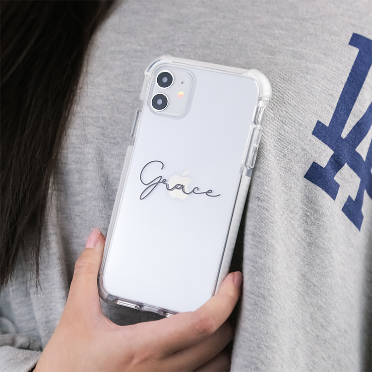 細字簽名 撞白殼 - (訂製名字) iPhone客製化手機殼