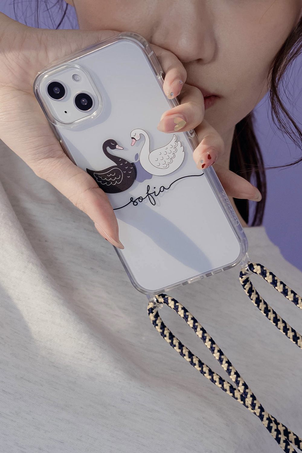 黑白天鵝 - (客製化) iPhone透明掛繩手機殼