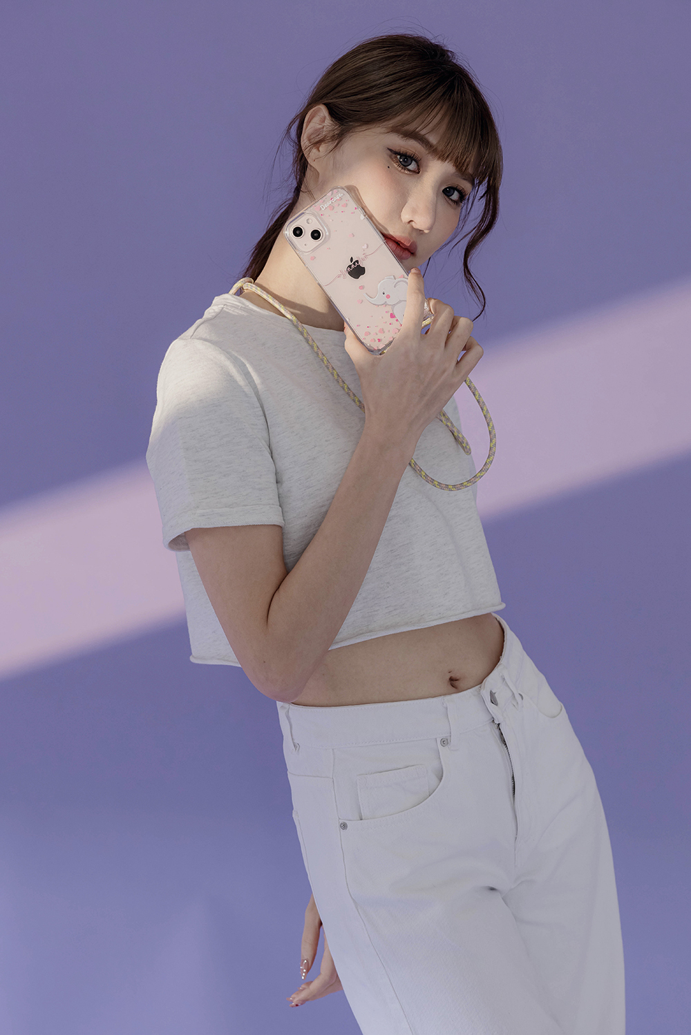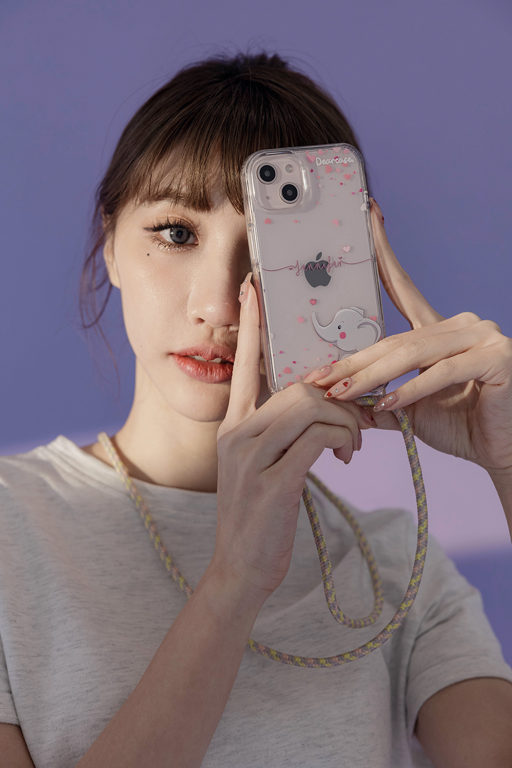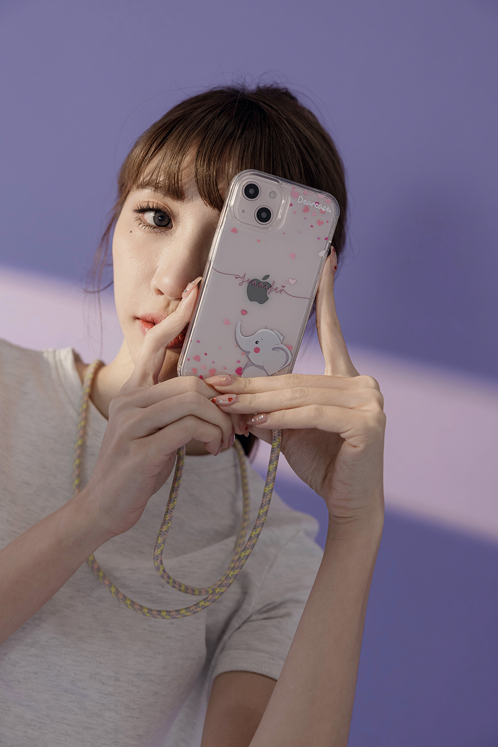 粉紅小象 - (客製化) iPhone透明掛繩手機殼