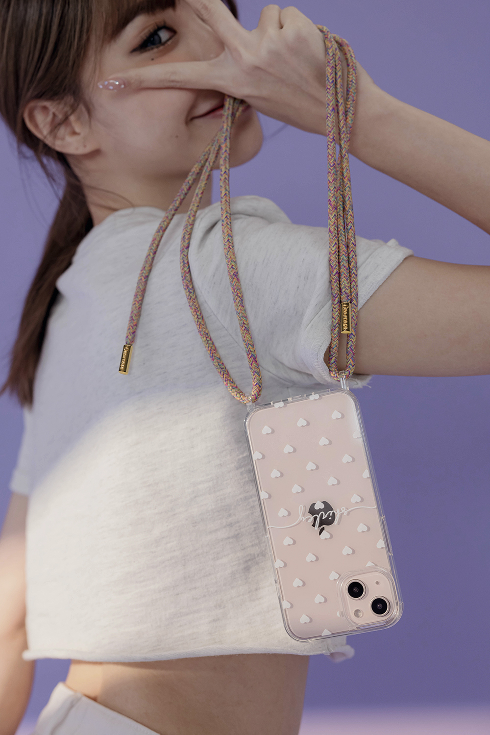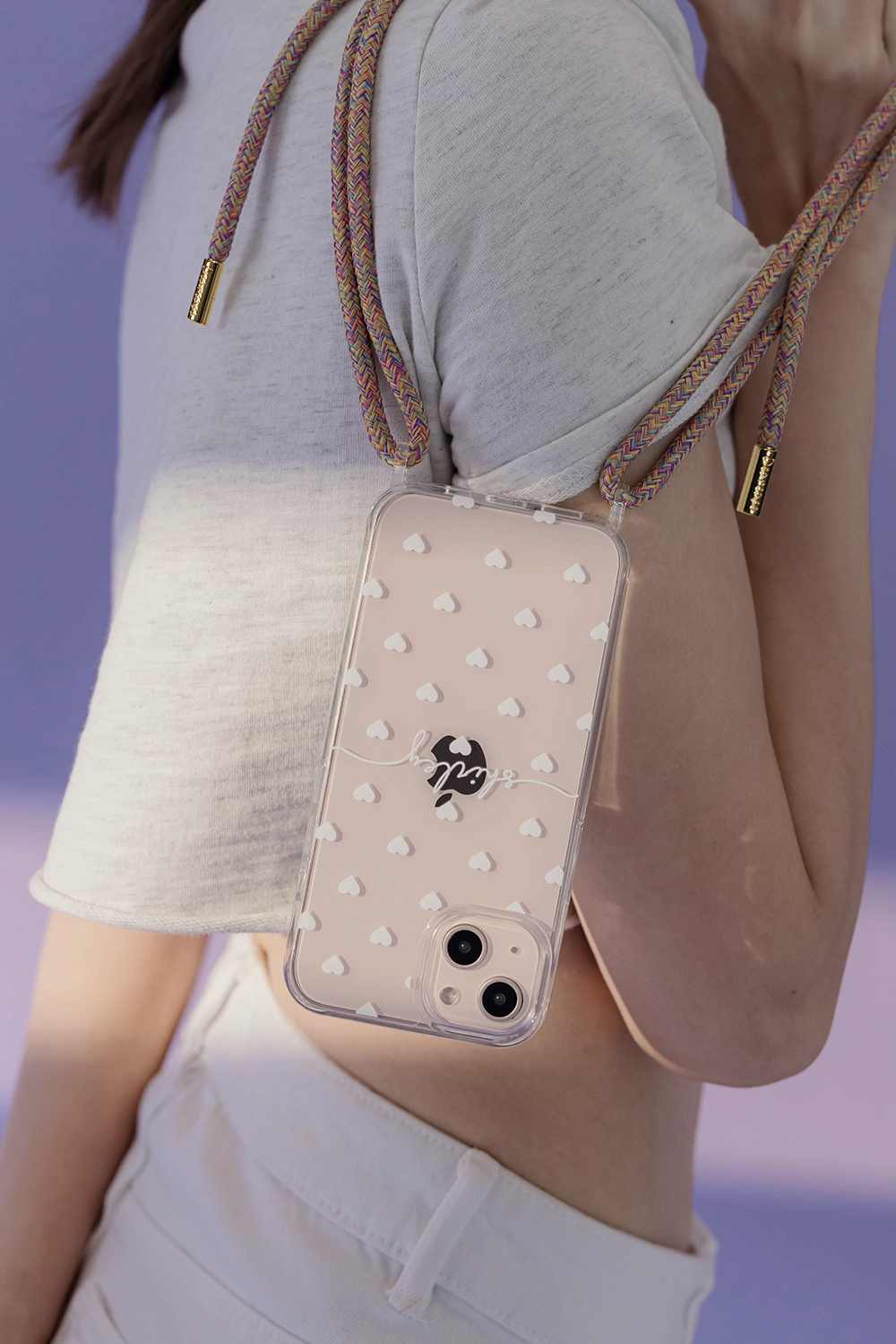 白色愛心 - (客製化) iPhone透明掛繩手機殼