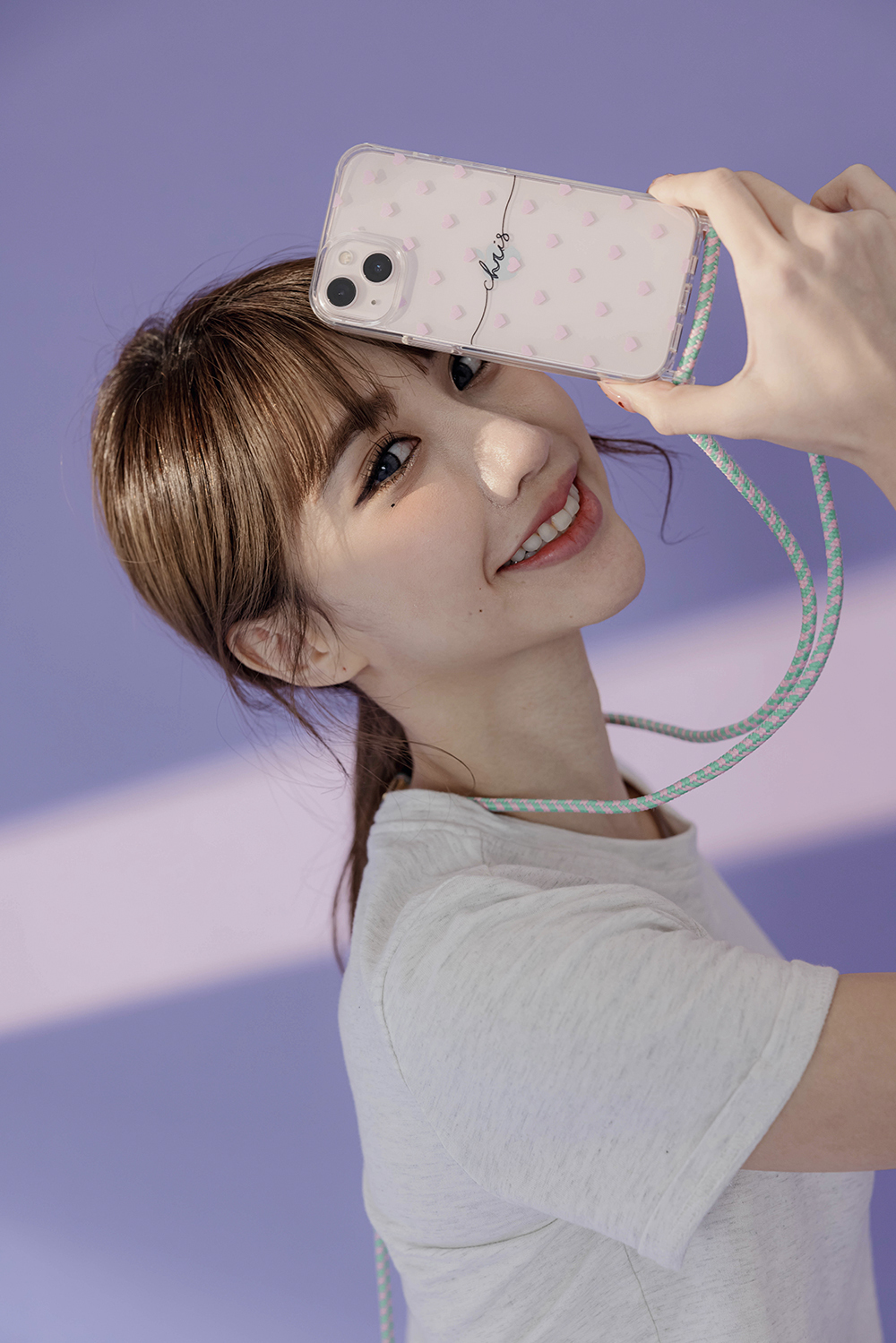 粉色愛心 - (客製化) iPhone透明掛繩手機殼