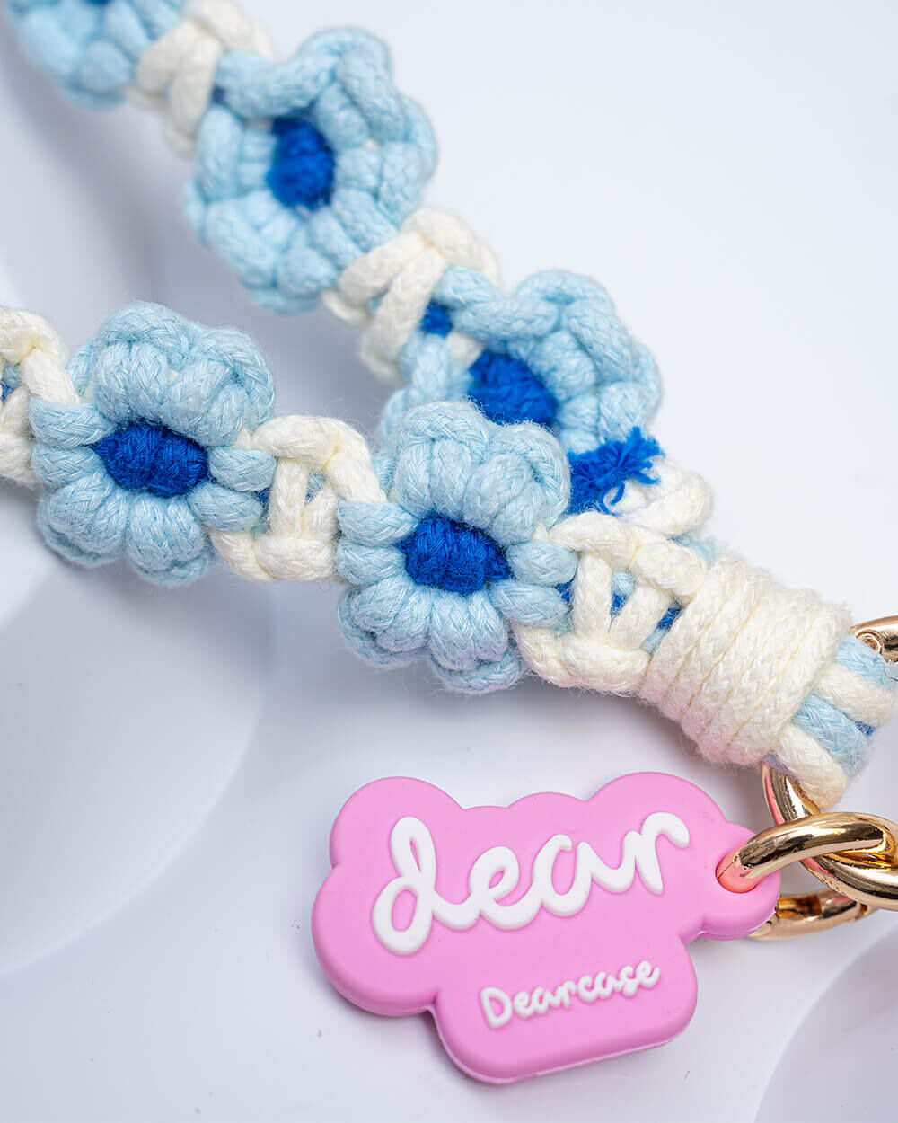 (天空藍) 小清新花朵 手工編織掛繩 短掛繩 (含墊片)