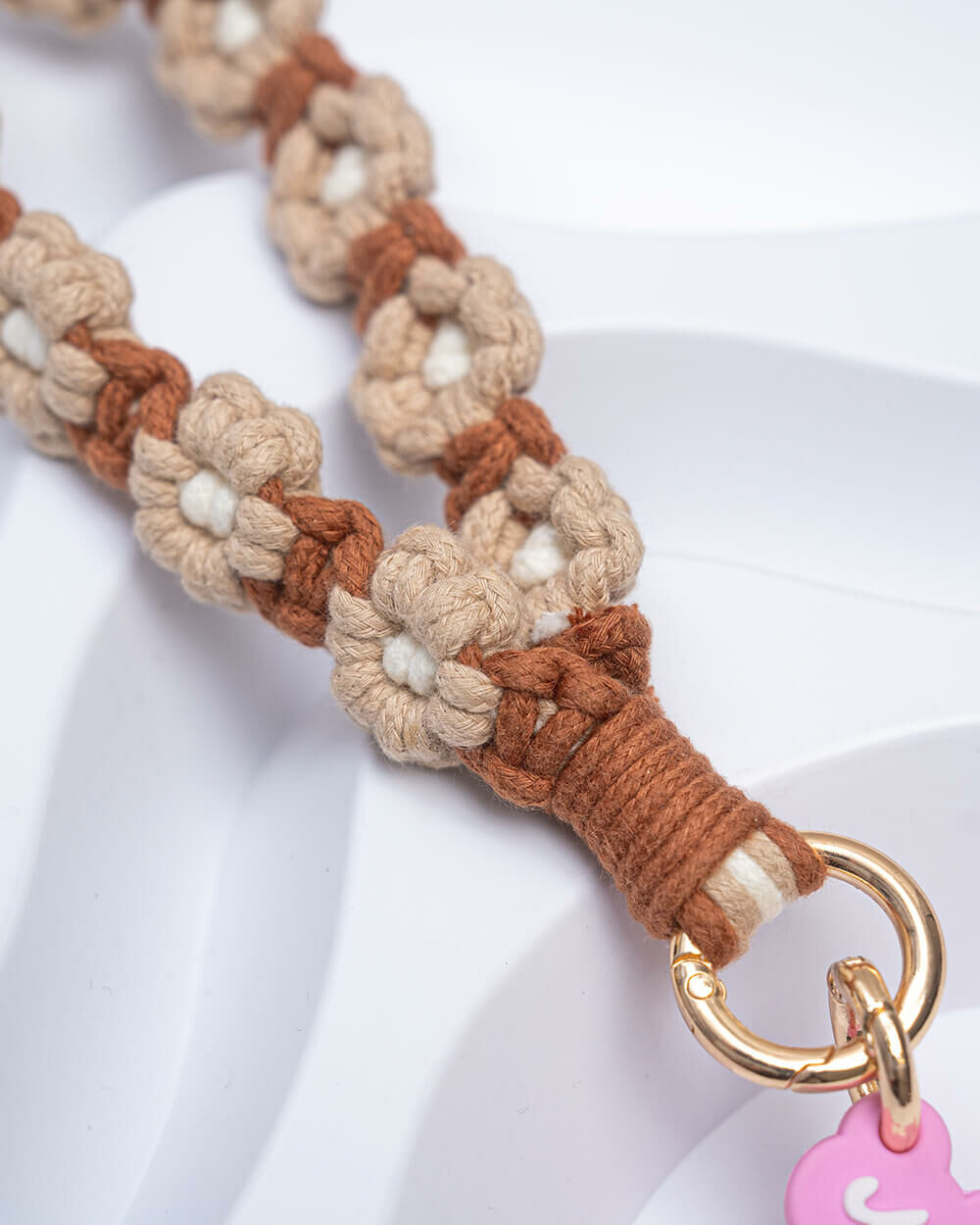 (卡其咖) 小清新花朵 手工編織掛繩 短掛繩 (含墊片)