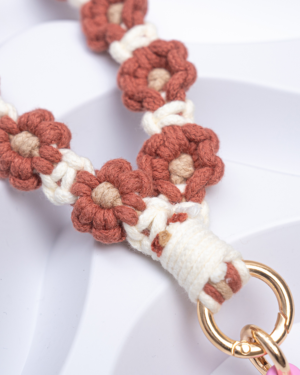 (卡其紅) 小清新花朵 手工編織掛繩 短掛繩 (含墊片)