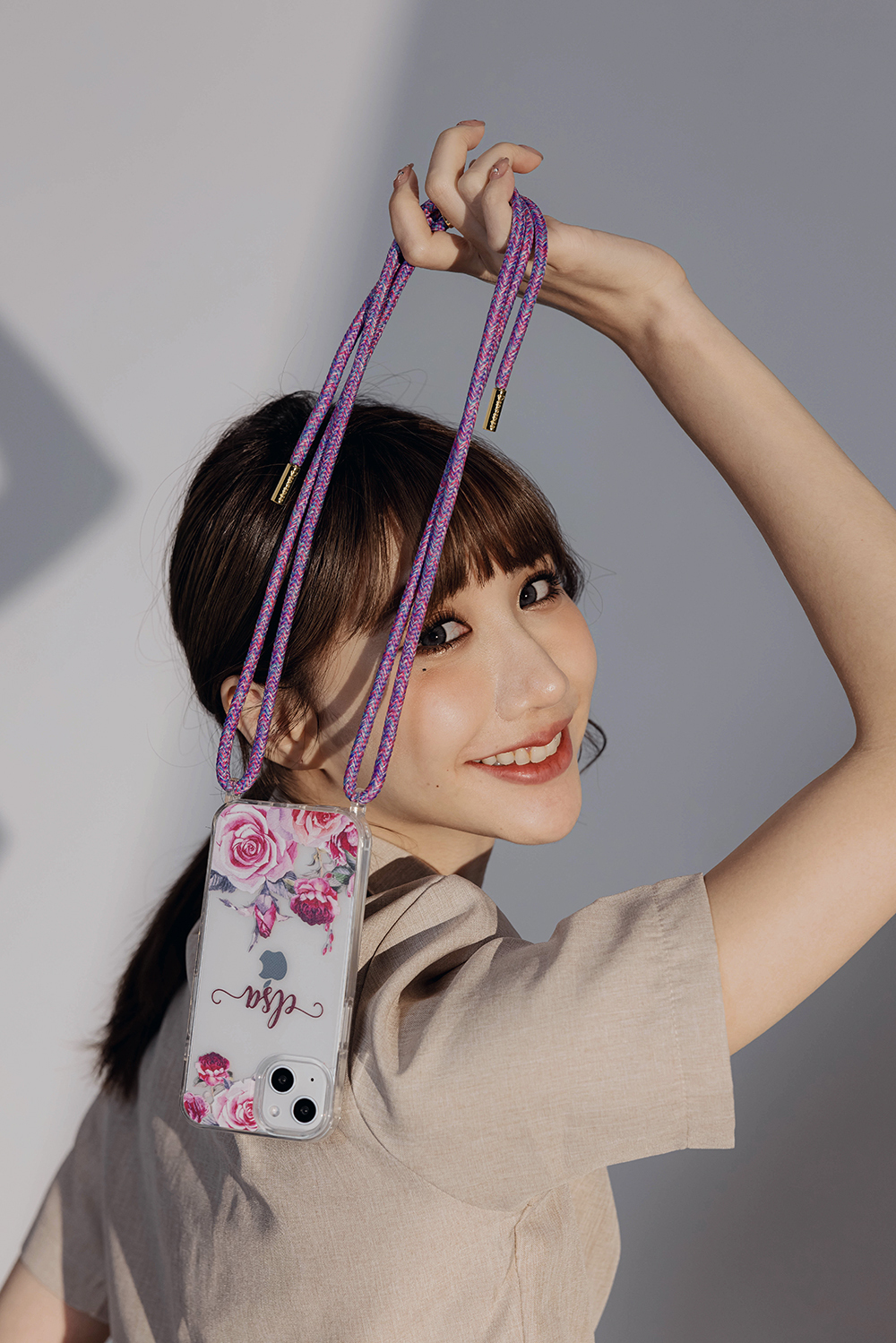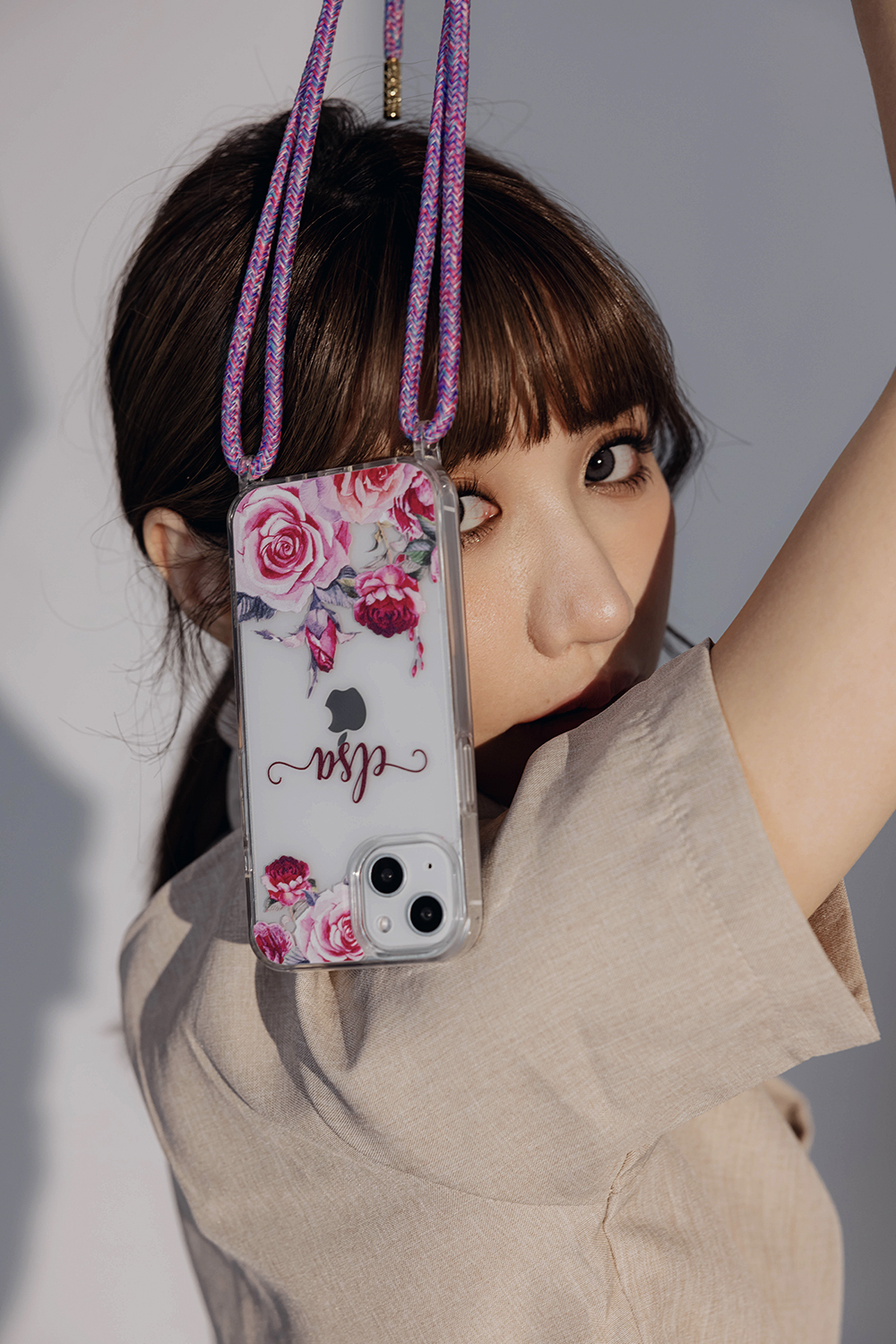桃紫玫瑰 - (客製化) iPhone透明掛繩手機殼