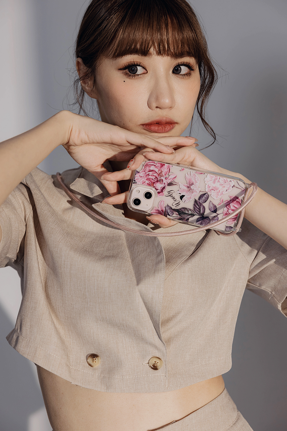 粉康乃馨 - (客製化) iPhone背帶掛繩手機殼