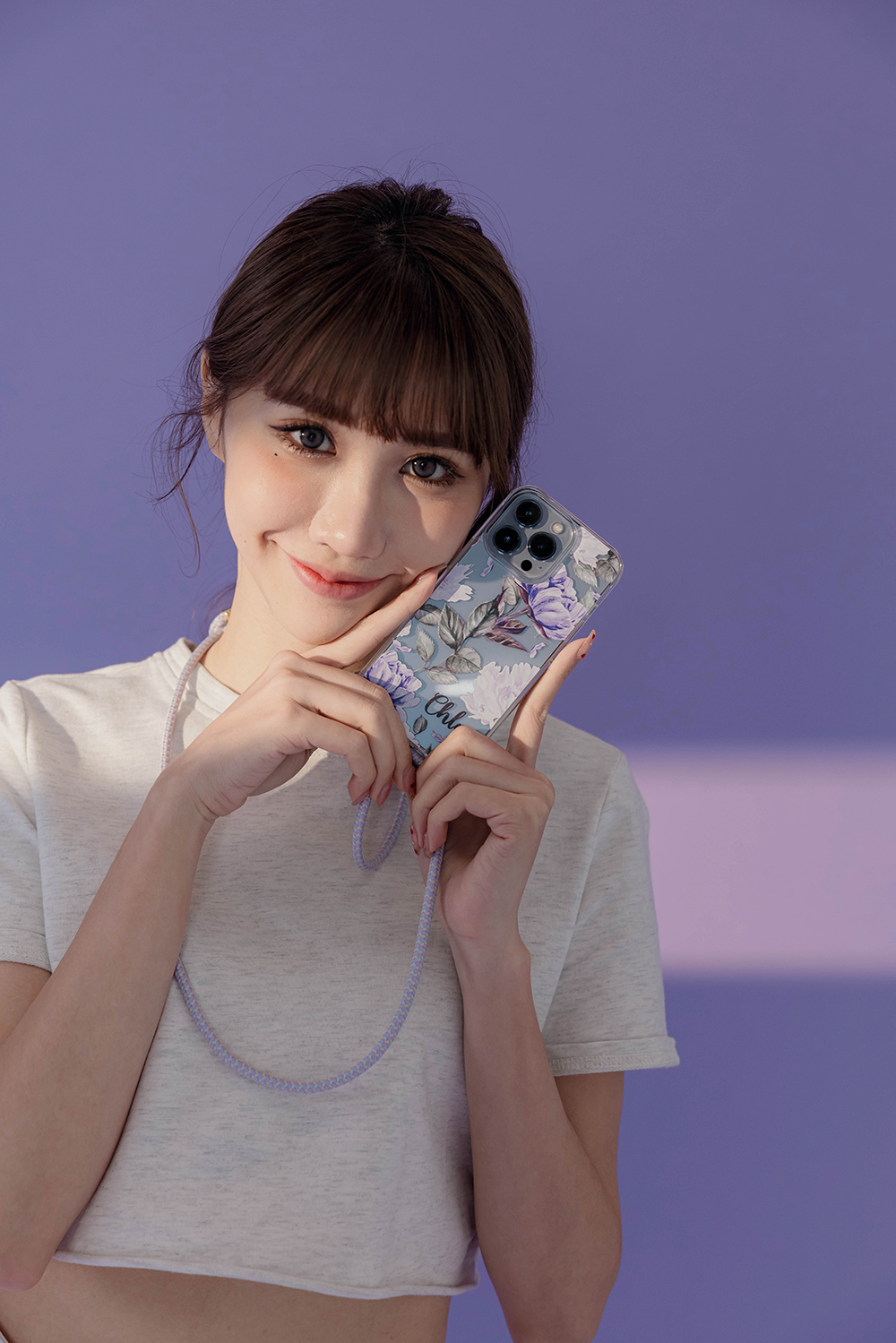 紫色牡丹 - (客製化) iPhone背帶掛繩手機殼