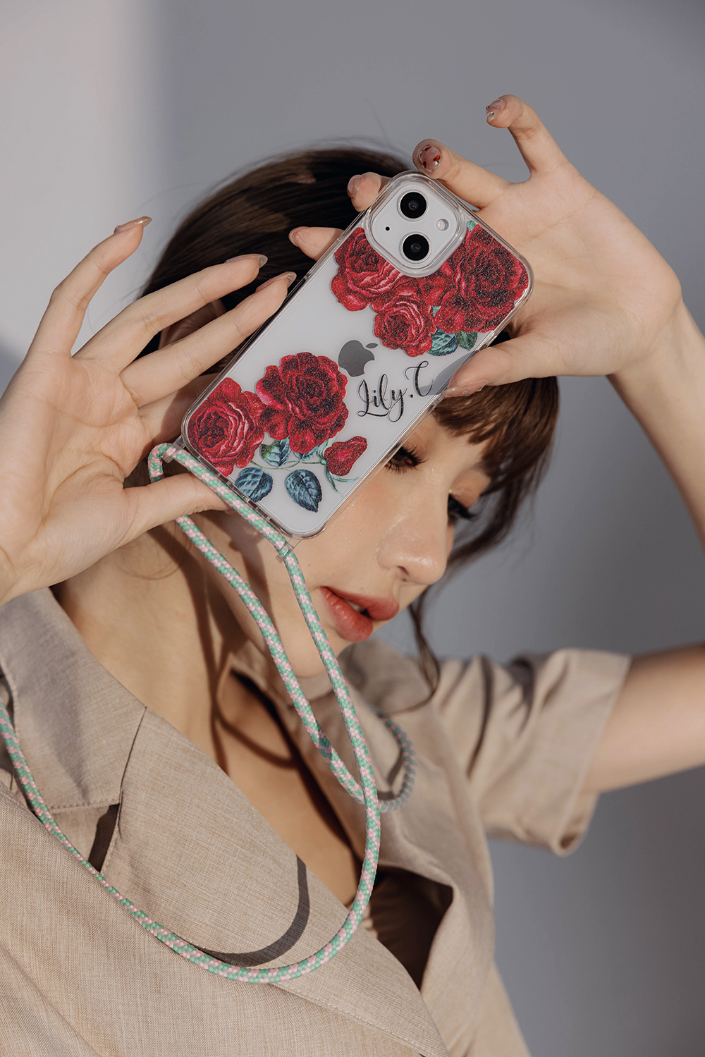 刺繡玫瑰 - (客製化) iPhone背帶掛繩手機殼