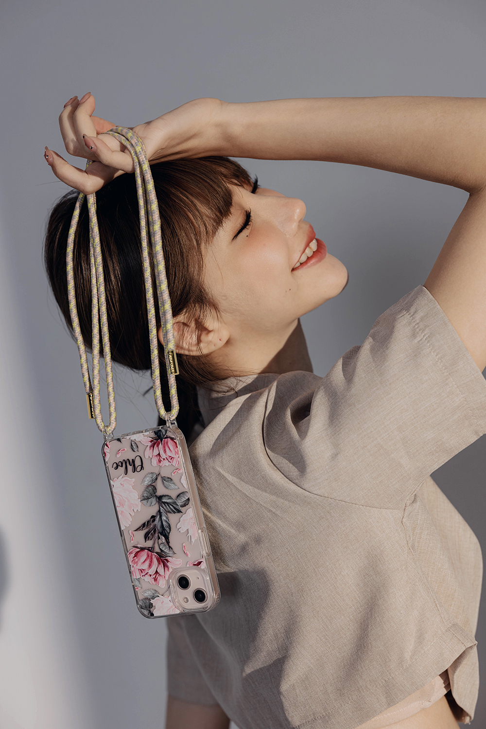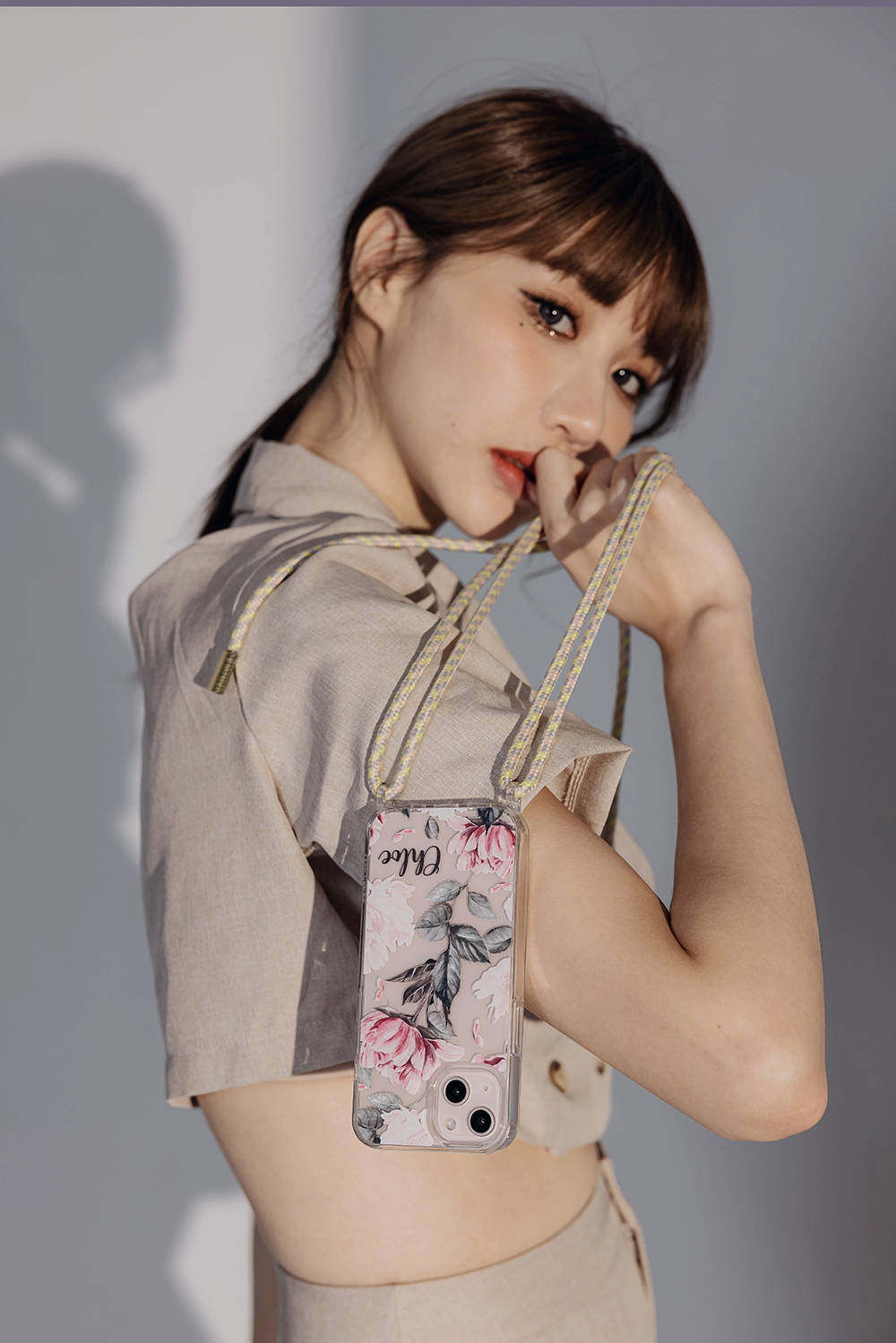 藕色牡丹 - (客製化) iPhone背帶掛繩手機殼