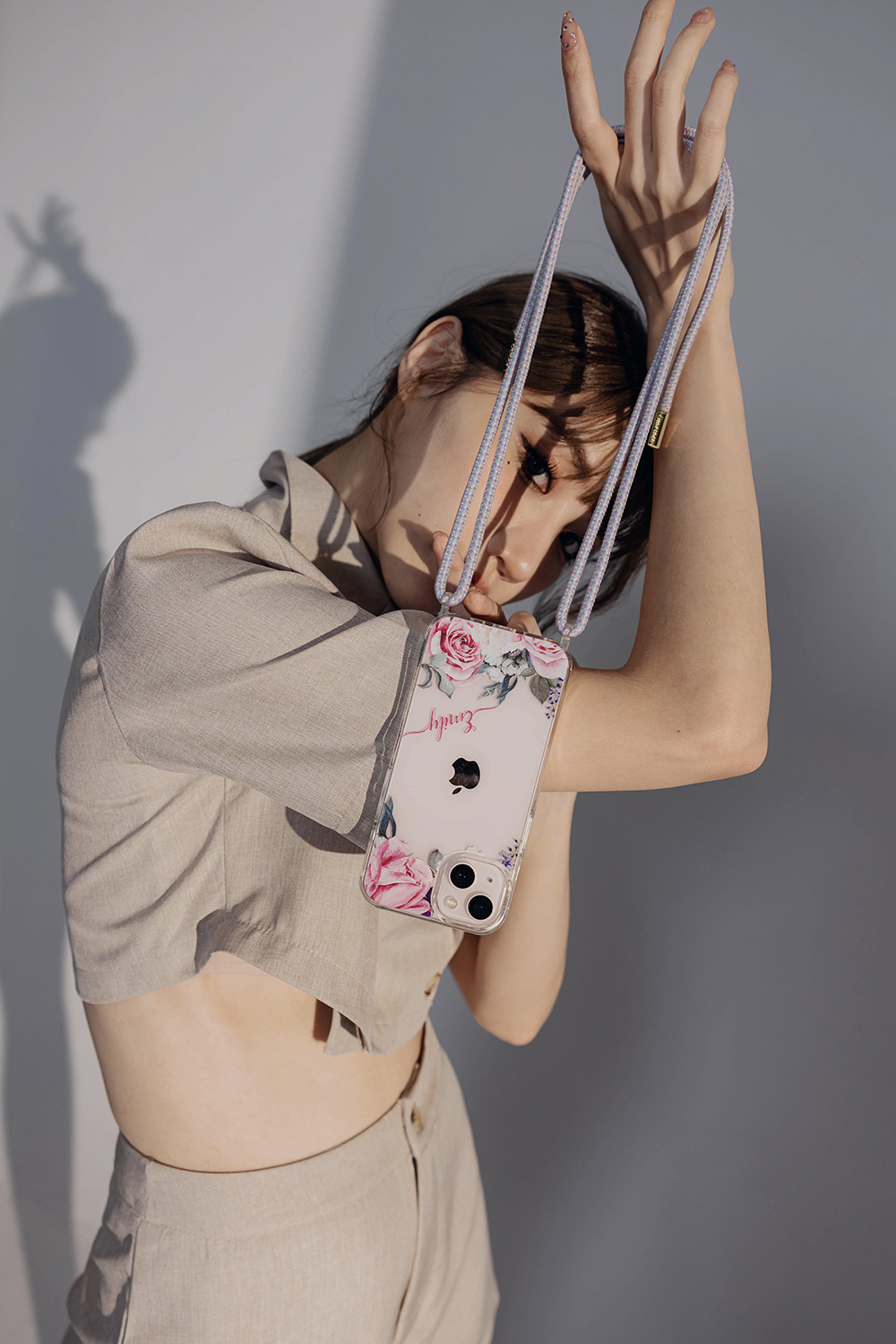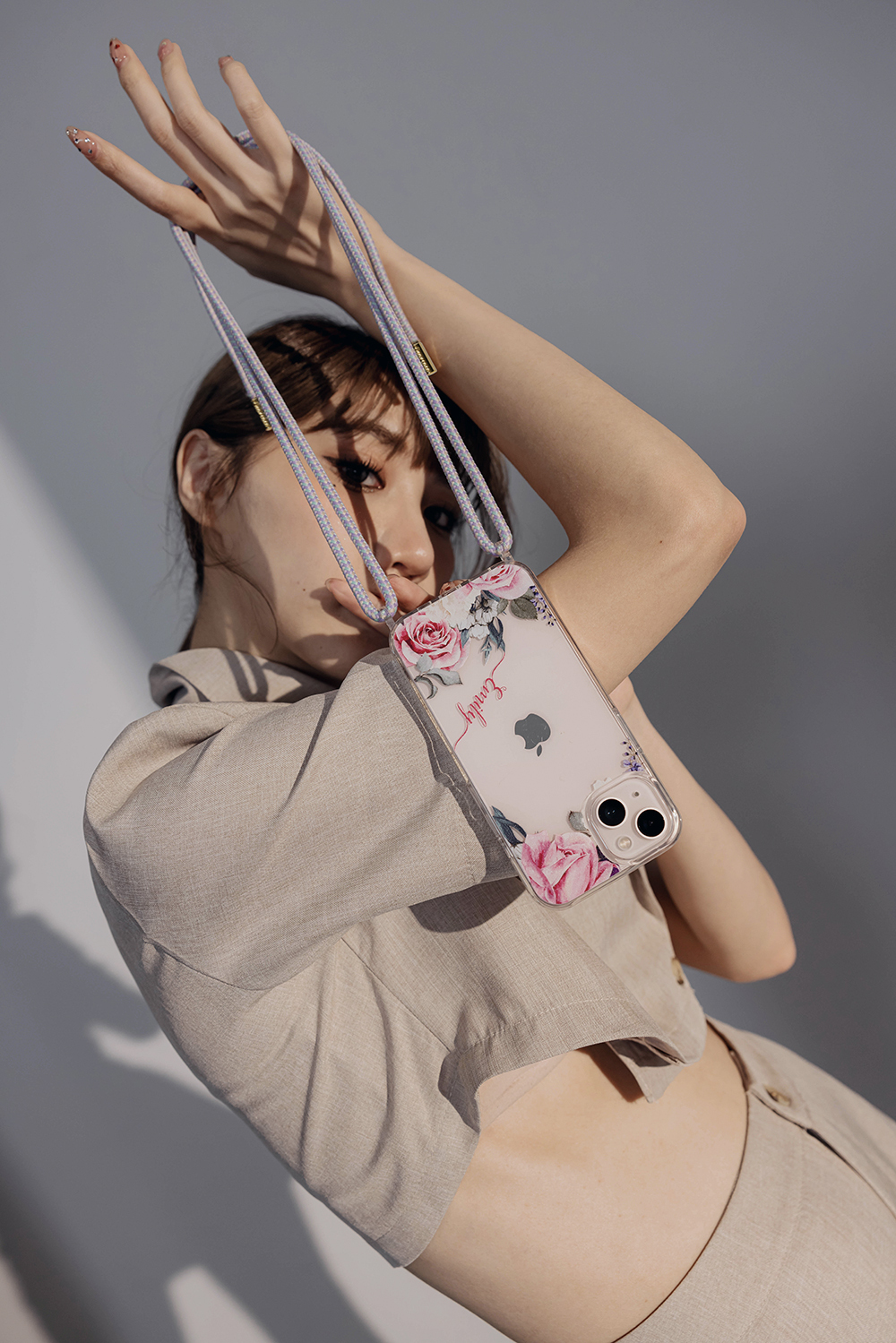 淡粉玫瑰 - (客製化) iPhone透明掛繩手機殼