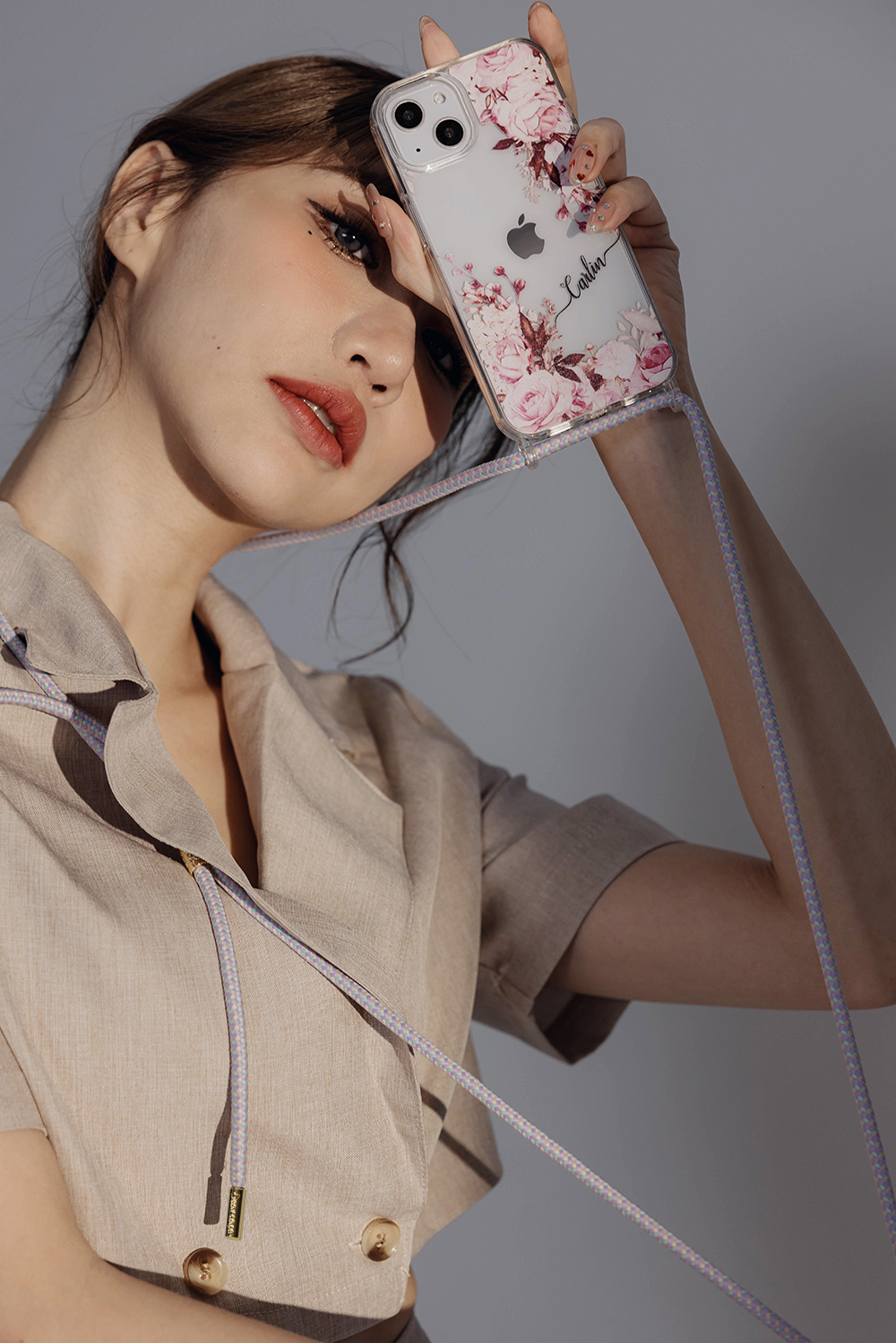 法式玫瑰 - (客製化) iPhone透明掛繩手機殼