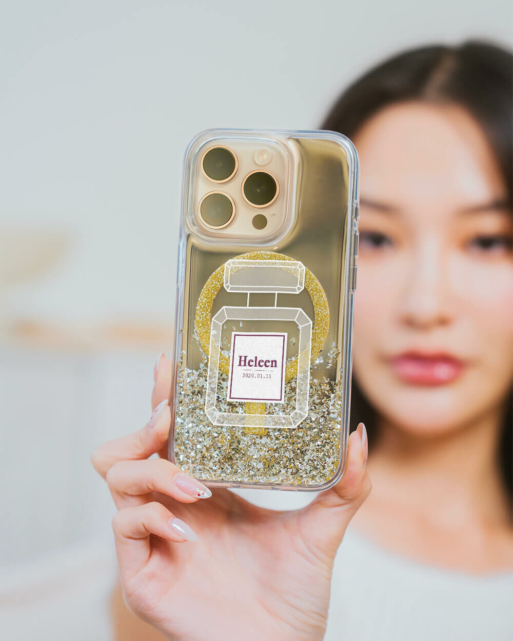 清新香水 (MagSafe磁吸) 閃耀金鏡面殼 - (訂製名字) iPhone客製化手機殼