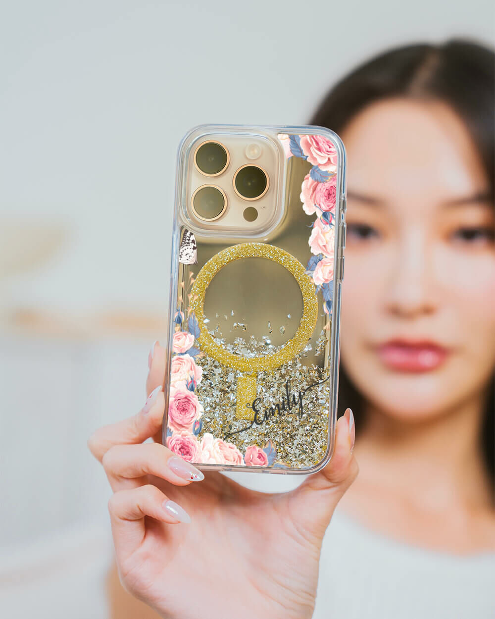 婚禮玫瑰 (MagSafe磁吸) 閃耀金鏡面殼 - (訂製名字) iPhone客製化手機殼