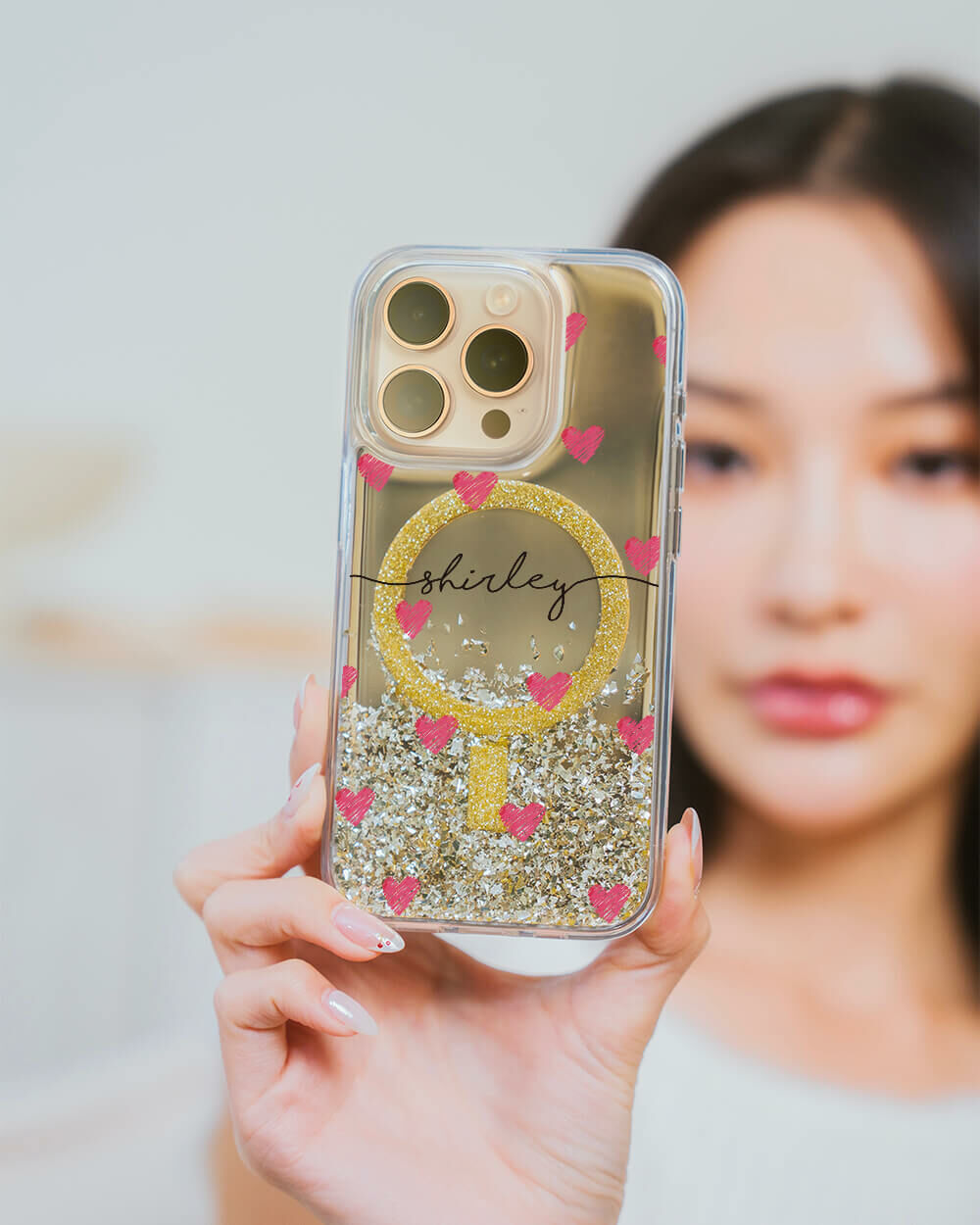 塗鴉愛心 (MagSafe磁吸) 閃耀金鏡面殼 - (訂製名字) iPhone客製化手機殼