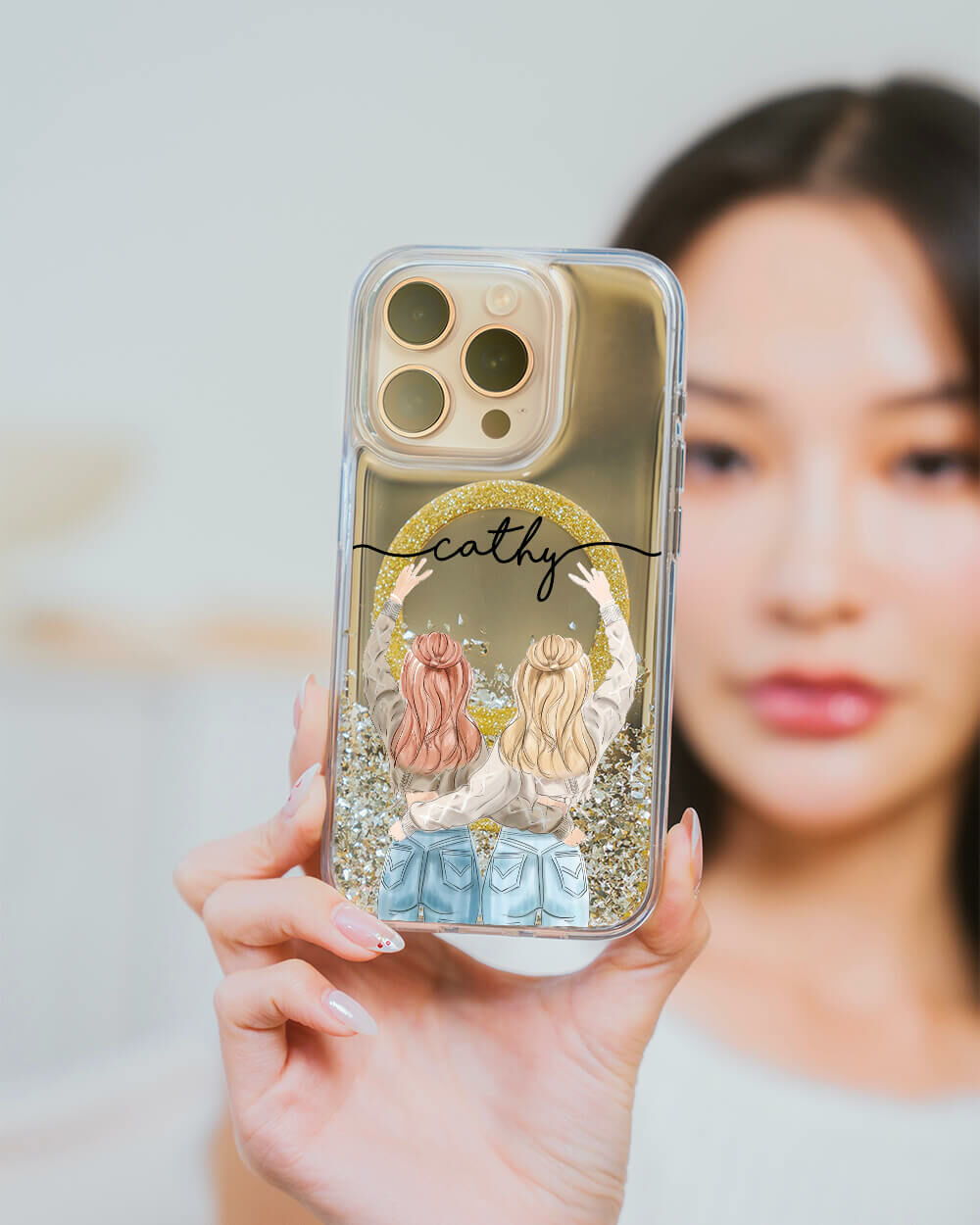 閨蜜女孩 (MagSafe磁吸) 閃耀金鏡面殼 - (訂製名字) iPhone客製化手機殼