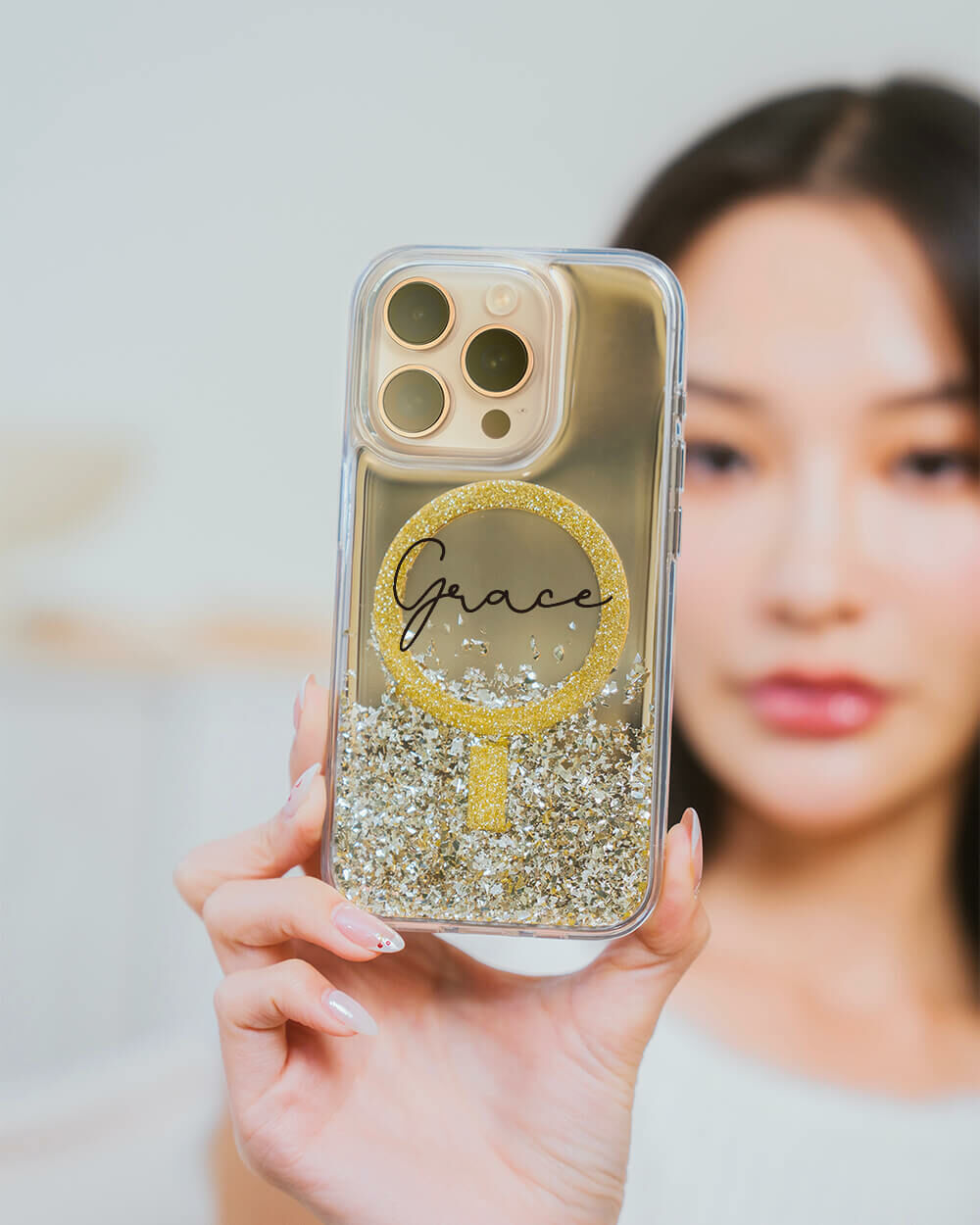 細字簽名 (MagSafe磁吸) 閃耀金鏡面殼 - (訂製名字) iPhone客製化手機殼